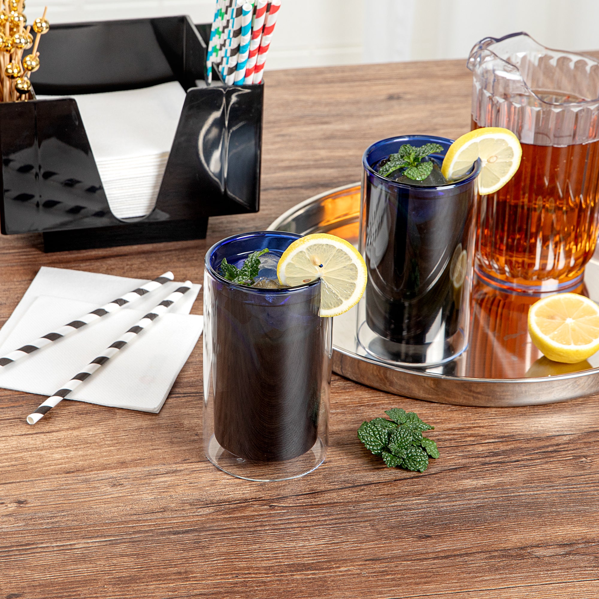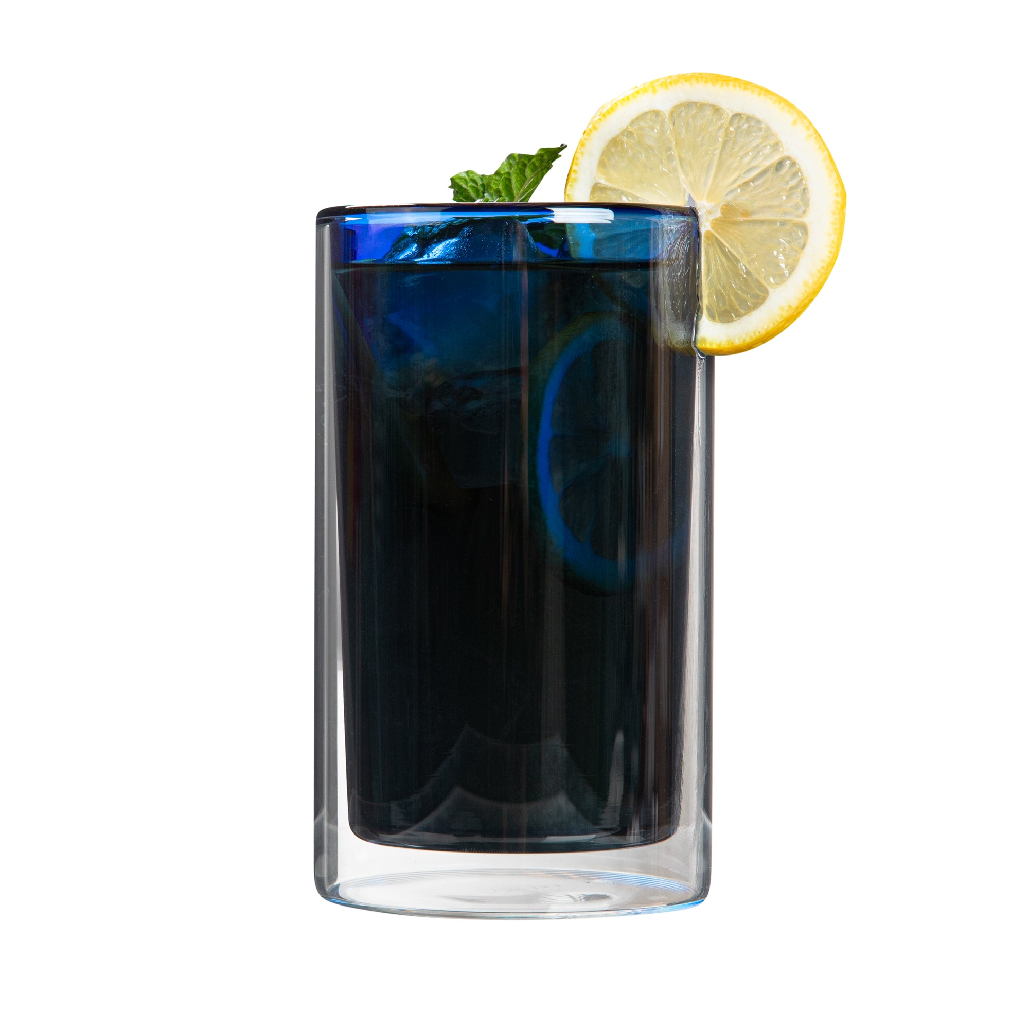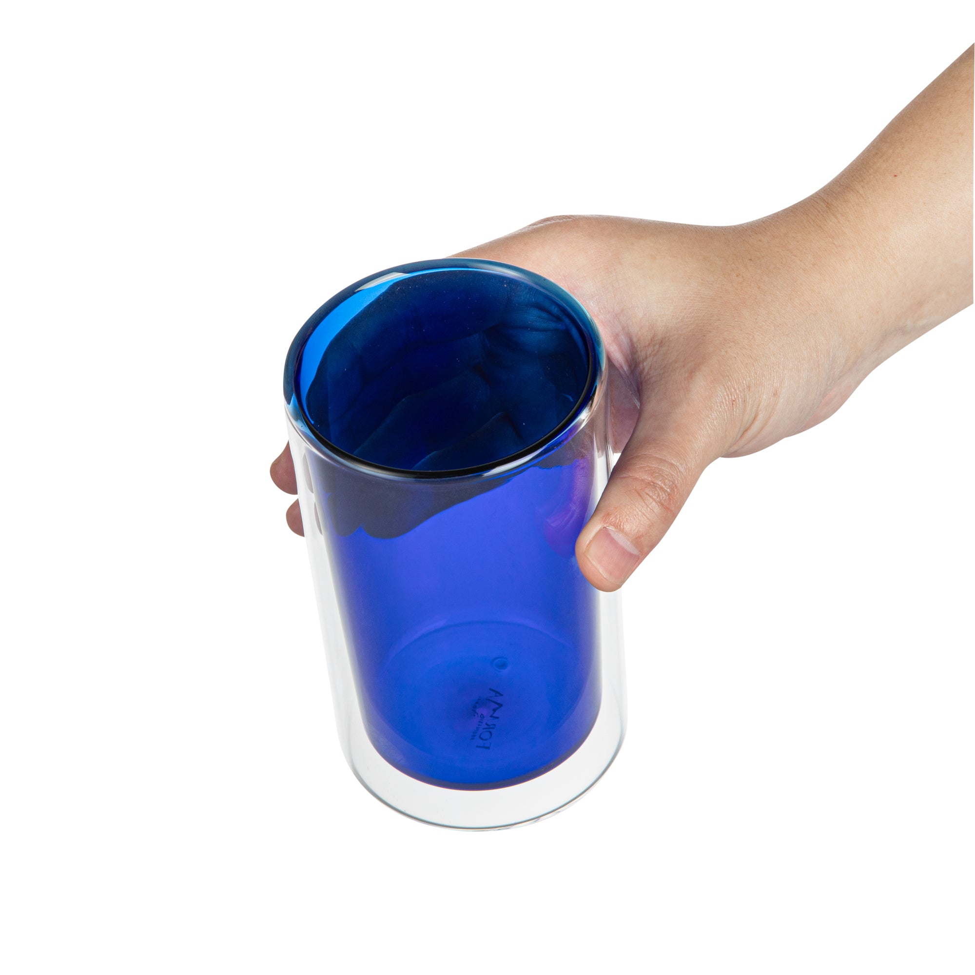 14 OZ BLUE GLASS TUMBLER - DOUBLE WALL, BOROSILICATE
