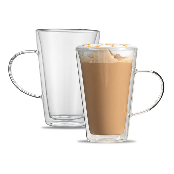 14 OZ GLASS MUG - DOUBLE WALL, BOROSILICATE, WITH HANDLE