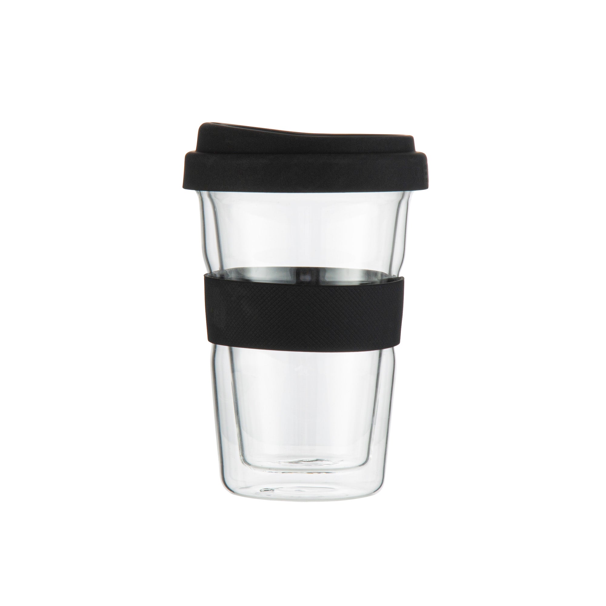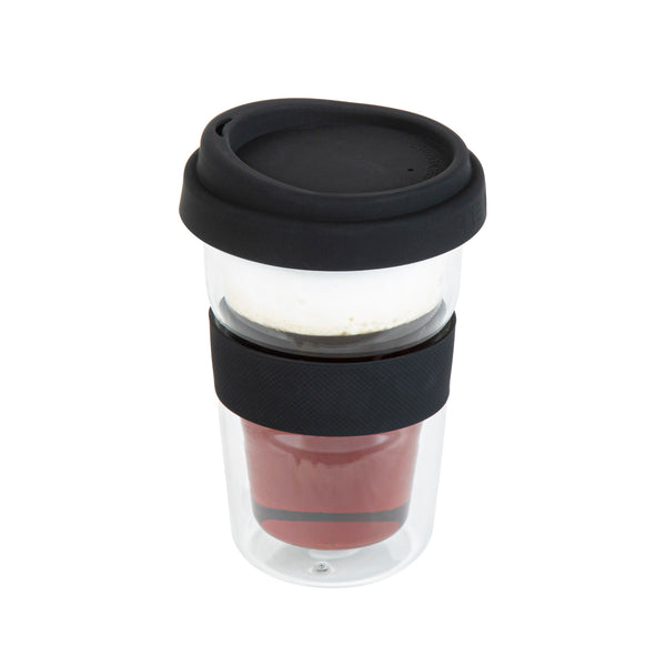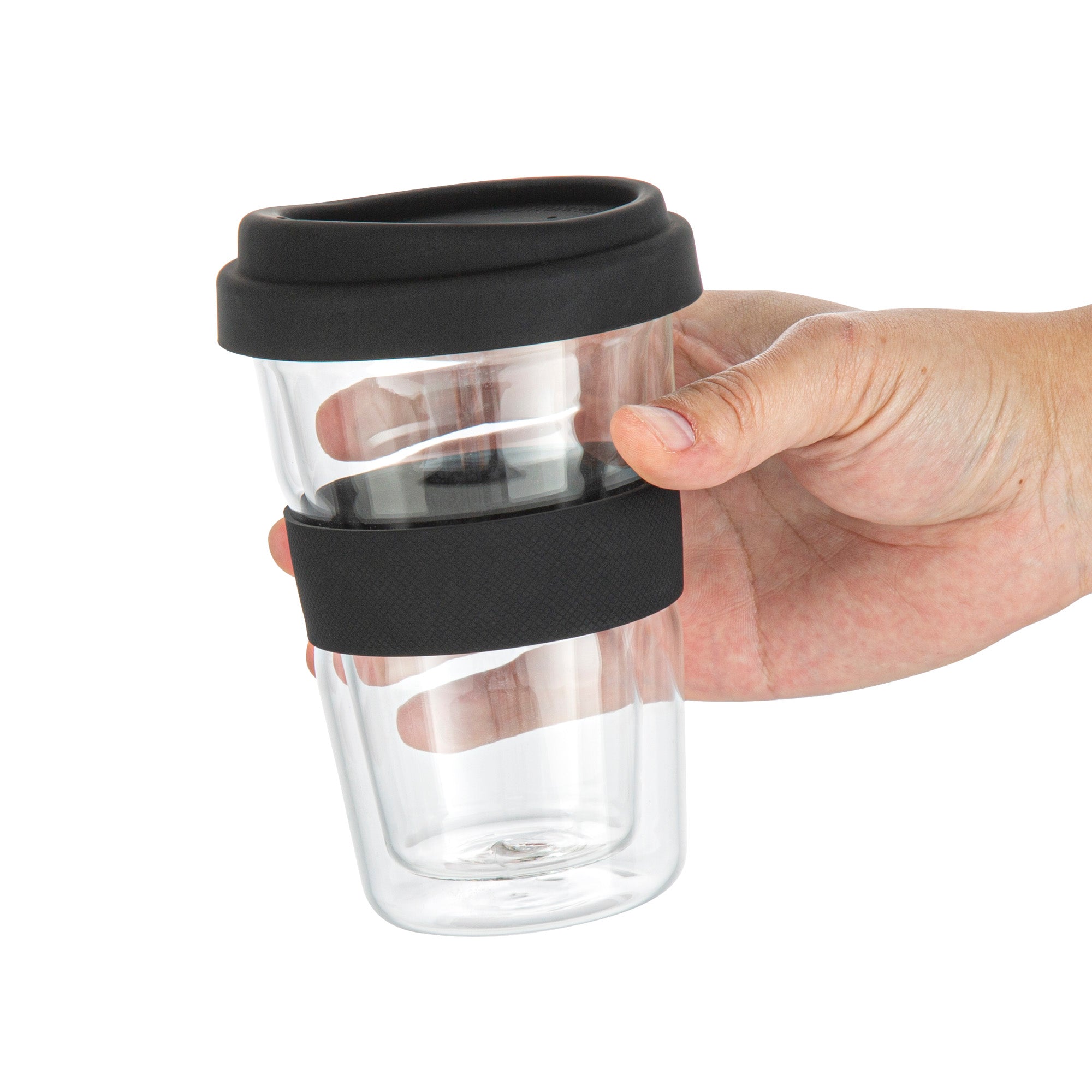 14 OZ GLASS TRAVEL MUG - DOUBLE WALL, BOROSILICATE