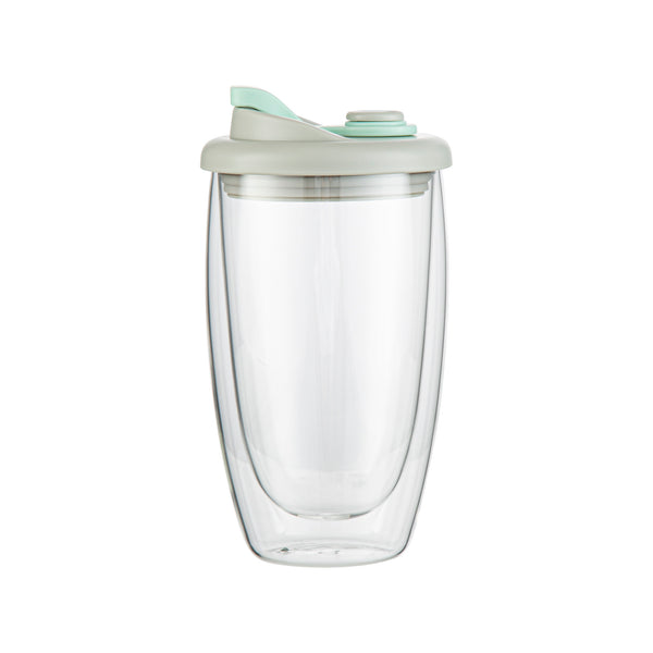 15 OZ GLASS TRAVEL MUG - DOUBLE WALL, BOROSILICATE