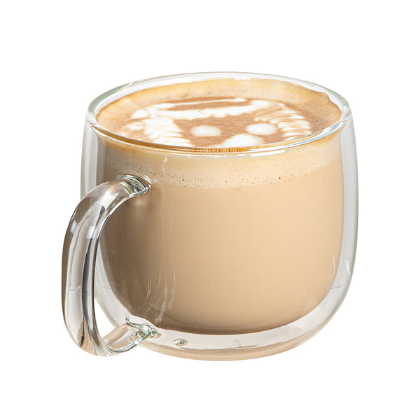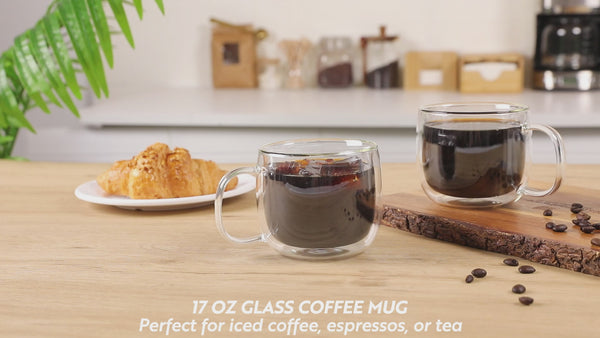 17 OZ GLASS COFFEE MUG - DOUBLE WALL, BOROSILICATE, WITH HANDLE