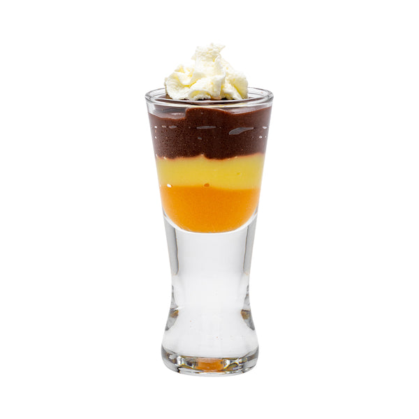 Showcase your delicious desserts with our Forma Professional 2-ounce Concave Dessert Shot Glasses. These heavy shot glasses beautifully display mousses, parfaits, tres leches, ice cream, and other delectable delights. The sleek hourglass shape narrows near the base to ensure a comfortable grip for your clients and employees. As an added design feature, the extra-thick concave base of these spirit shot glasses is a stylish design that provides balance and stability on solid flat surfaces. These shot glasses are made out of durable premium glass, making them ideal for caterers, restaurants, bakeries, clubs, and ice cream shops. Conveniently dishwasher-safe, these stylish shot glasses are easy to clean. These 2-oz shot glasses are also ideal for tequila, bourbon, and whiskey shots. Sold in a 6 count box.