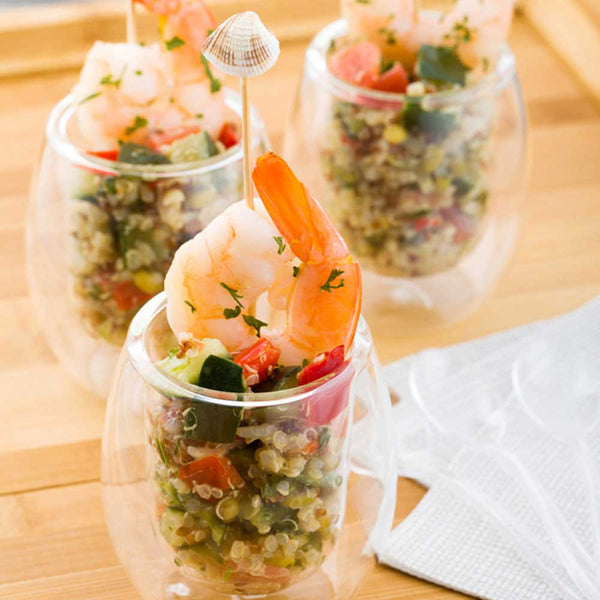 Impress your guests with our Forma Professional 3-ounce Round Glass Appetizer Shot Glasses. Made from premium glass, these small dessert cups effortlessly elevate your culinary presentation. With a contemporary double wall design, these shooter glasses stylishly showcase every delicious layer of your appetizers or desserts, making them stand out. Holding up to 3 ounces, use these small appetizer cups to stunningly display savory shrimp cocktail shooters at your catered event, or to gracefully present petite chocolate mousse creations at your restaurant. The rolled rim of these mini cups minimizes the risk of damaged edges, enhancing the cups' durability and longevity. These mousse glass cups are dishwashable, ensuring an easier cleanup process. Measuring 2.6 inches in diameter by 2.8 inches in height, these sample cups have a capacity of 3 ounces. Sold in a 10 count box.