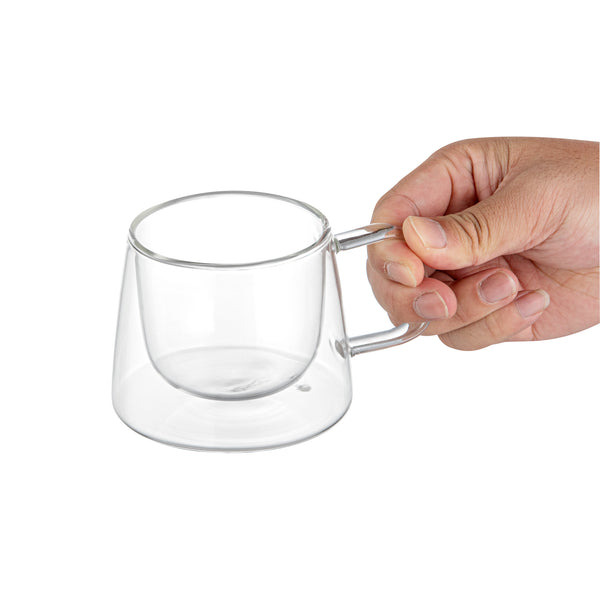 7 OZ GLASS COFFEE MUG - DOUBLE WALL, BOROSILICATE, WITH HANDLE