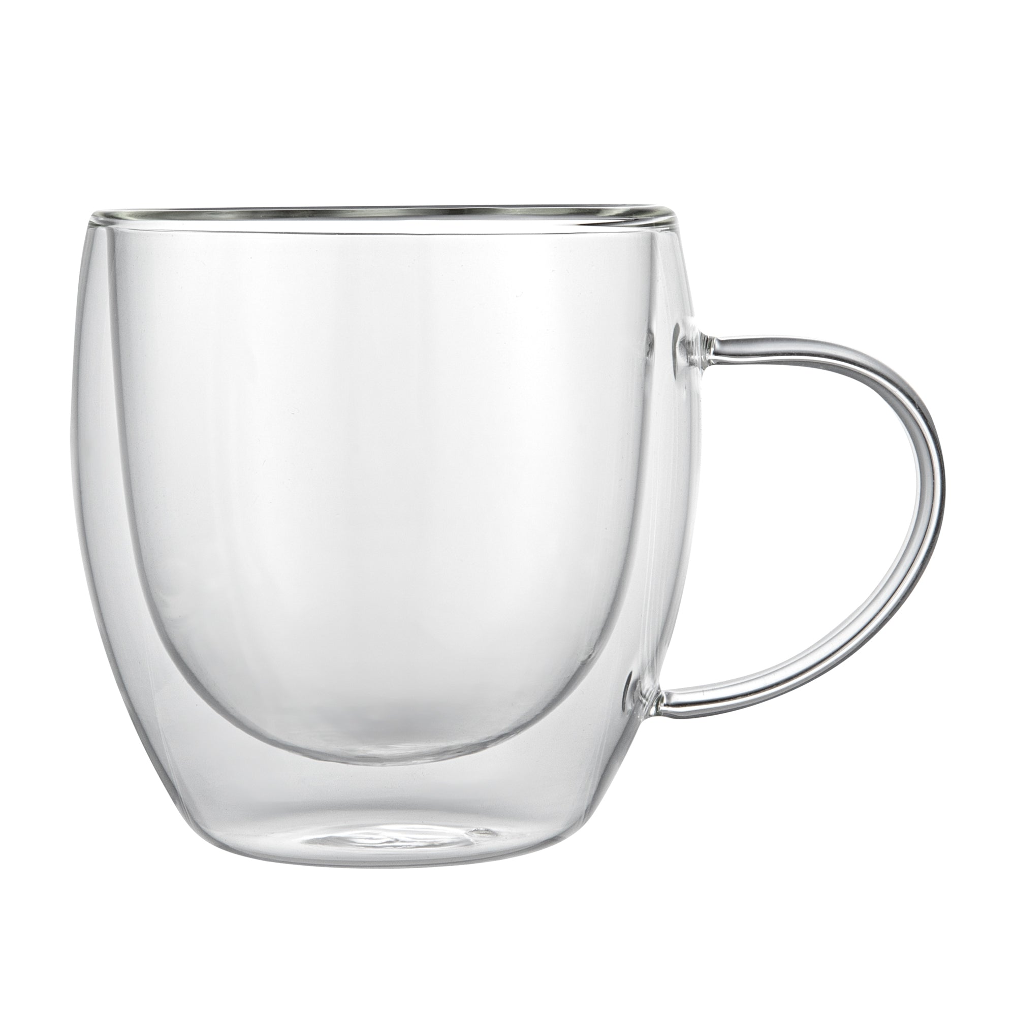 8 OZ GLASS COFFEE CUP - DOUBLE WALL, BOROSILICATE, WITH HANDLE