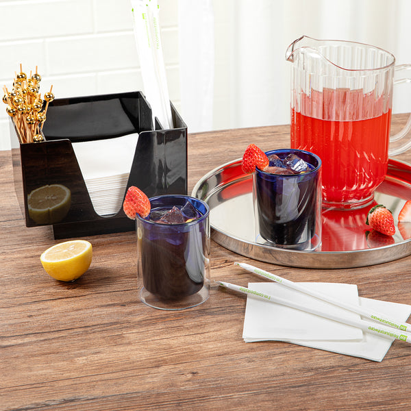 Keep beverages at the ideal temperature with insulated drinkware. The Forma Professional Insulated Borosilicate Glass Tumbler features a double-wall design that expertly retains heat for hot drinks and keeps cold beverages refreshingly chilled, ensuring optimal enjoyment for every sip. Crafted from premium borosilicate glass, this borosilicate glass tumbler offers exceptional durability, resisting thermal shock to safely serve both hot and cold drinks. With a convenient 8.84-ounce capacity and elegant blue tint, this cocktail glass enhances the presentation of juices, cocktails, and more, making it a versatile addition to any foodservice setting. Simplify your back-of-house operations with its microwave-safe design, allowing for quick reheating of beverages. Plus, the dishwasher-safe feature guarantees effortless cleaning, streamlining your service routine. Elevate your drink service with this microwave-safe tumbler, perfect for any café or restaurant. Each order includes 12 Forma Professional Insulated Borosilicate Glass Tumblers.
