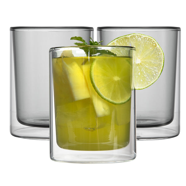 9 OZ GRAY GLASS TUMBLER - DOUBLE WALL, BOROSILICATE