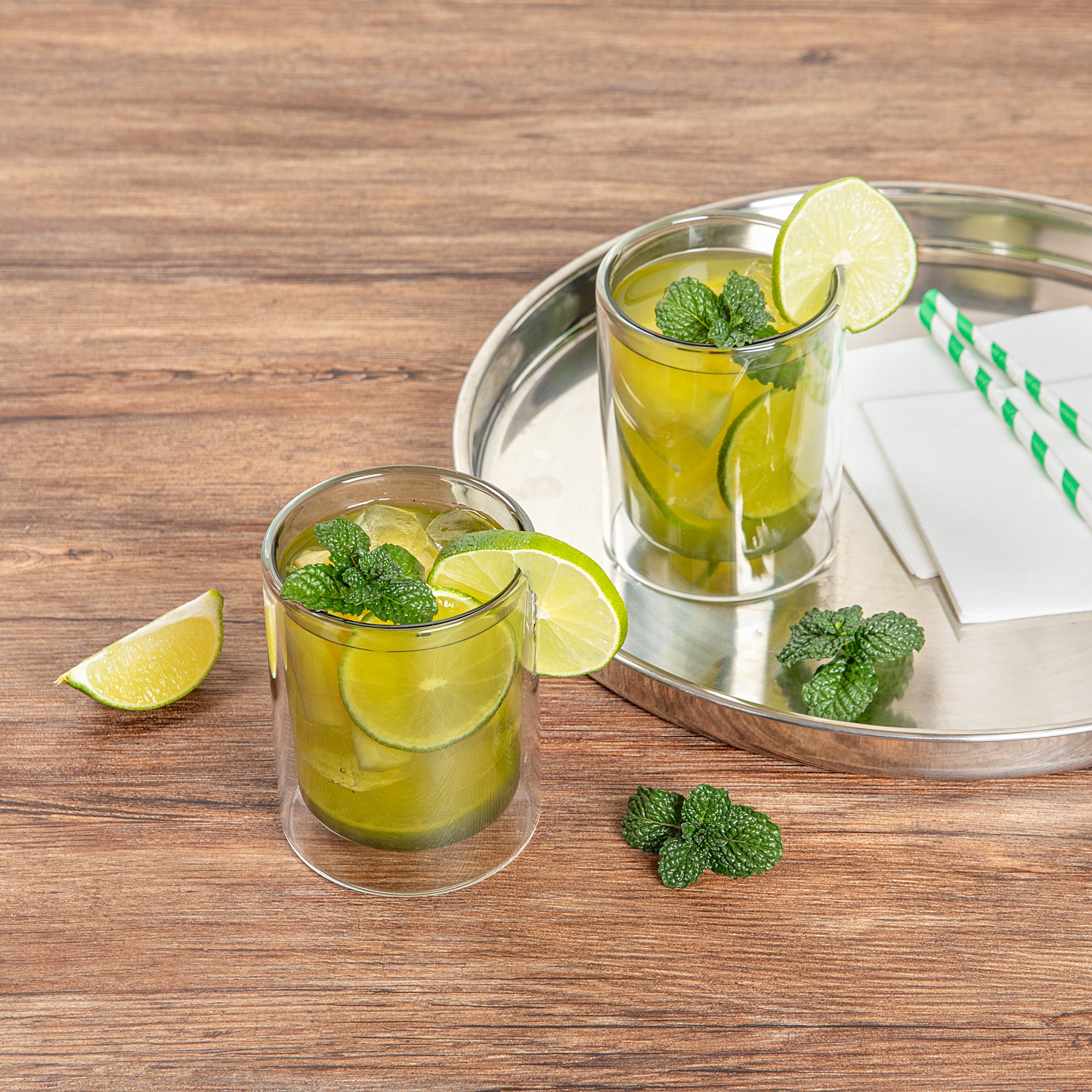 - Borosilicate double wall insulation keeps drinks warm or cold