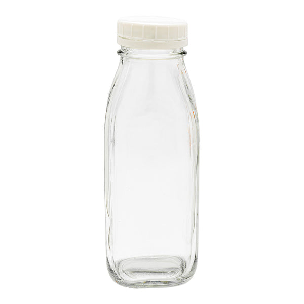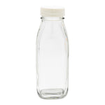 Easily package take out beverages using our French Countryside 16-ounce Glass Square Bottles. Made from high-quality soda-lime glass, these durable glass juice bottles are food-safe for all kinds of drinks. To prevent messes, these clear glass bottles include tamper-evident bottle caps that visibly show signs of opening prior to purchase while creating an airtight seal to avoid spills. Great for bed and breakfasts or catering companies, these glass beverage bottles dishwasher-safe and can be repurposed after initial use when paired with our replacement bottle caps (SKU: RWG0048). Featuring a square shape, these glass milk bottles add a classic look to drinks. With a transparent finish, these square glass bottles are ideal for showcasing vibrant fruit-filled juices or iced teas. Measuring 2.75 inches in length by 2.75 inches in width by 7.5 inches in height, these smoothie glass bottles hold up to 16 ounces. Sold in a 10 count box.
