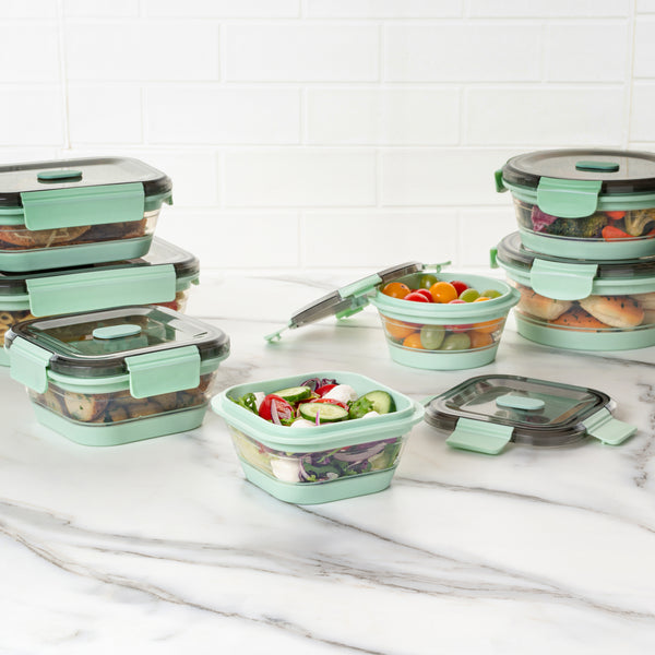 Embrace the clever storage design of these storage containers, as they are ingeniously collapsible when not in use, conserving cupboard space and contributing to a well-organized kitchen. Enjoy an uncluttered cooking space with these innovative containers.