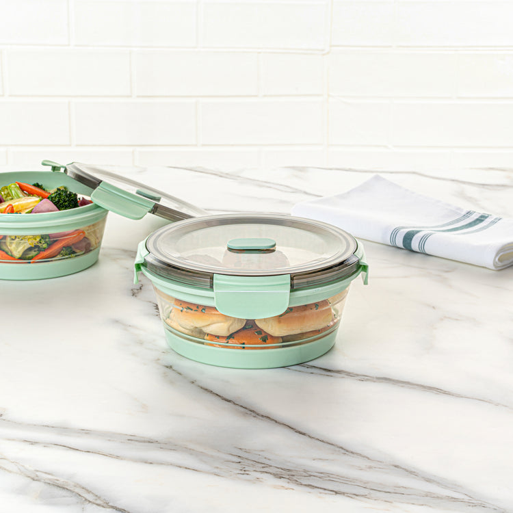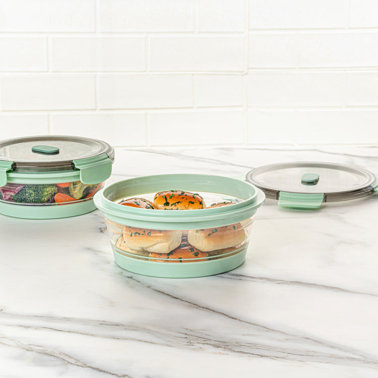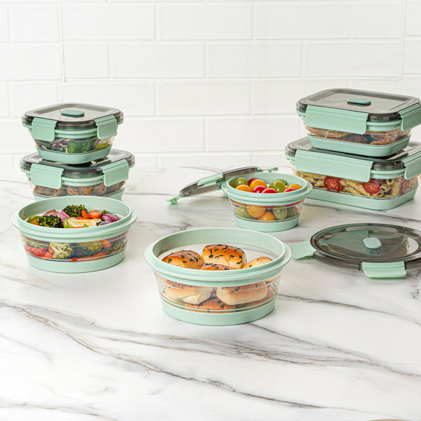 Embrace the clever storage design of these storage containers, as they are ingeniously collapsible when not in use, conserving cupboard space and contributing to a well-organized kitchen. Enjoy an uncluttered cooking space with these innovative containers.