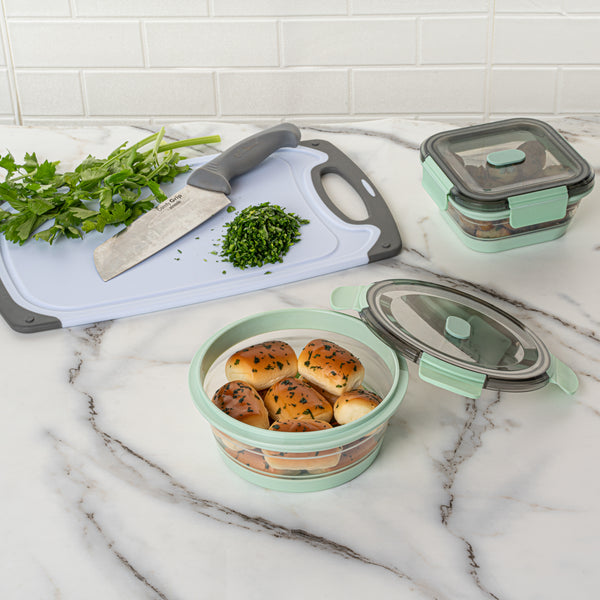 Embrace the clever storage design of these storage containers, as they are ingeniously collapsible when not in use, conserving cupboard space and contributing to a well-organized kitchen. Enjoy an uncluttered cooking space with these innovative containers.