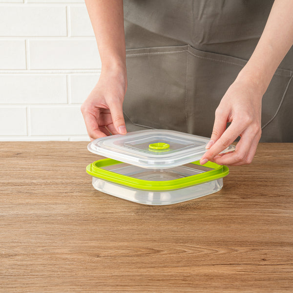 Embrace the clever storage design of these storage containers, as they are ingeniously collapsible when not in use, conserving cupboard space and contributing to a well-organized kitchen. Enjoy an uncluttered cooking space with these innovative containers.