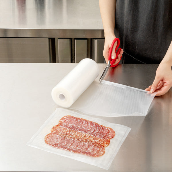 Featuring a 3-millimeter thickness, these vacuum bag rolls are durable to ensure no rips or breaks when packaging food. Securely store your food with these thick vacuum bag rolls.
