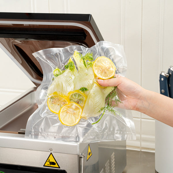 Our chamber vacuum sealer bags and pouches can be sealed with our matching Fresh Hero vacuum sealer to lock in the freshness of your food. Keep food fresher for longer!