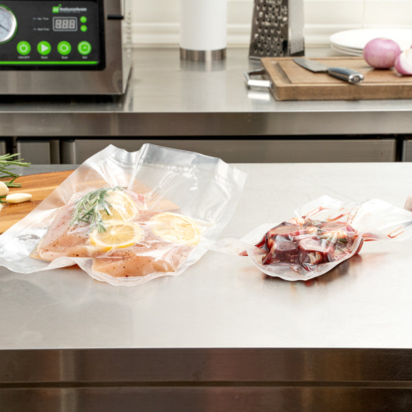 Our chamber vacuum sealer bags and pouches can be sealed with our matching Fresh Hero vacuum sealer to lock in the freshness of your food. Keep food fresher for longer!