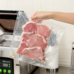 These vacuum sealer food saver bags and pouches can be submerged in hot water for thawing or sous vide cooking. Easily prep or cook stored food!