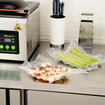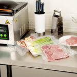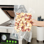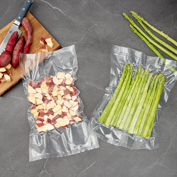 Lock in food's freshness with our Fresh Hero Clear Plastic Vacuum Packaging Bags. Coordinate these meal seal bags with our compatible Fresh Hero vacuum packaging machine to securely seal ingredients for later use (SKU: RWM0156S or RWM0157). These food sealer bags are 3 mils thick to prevent punctures or other damage. Constructed from polyethylene and nylon, these BPA-free food storage bags are durable to easily carry all kinds of ingredients. These food saver vacuum bags can be placed in boiling water for convenient sous vide cooking. For effortlessly storing and heating prepped foods, these food vacuum bags are freezable and microwavable. With a total measurement of 18 inches in length by 10 inches in width, these vacuum storage bags are perfect for storing all types of foods. Sold in a 1000 count box. Fresh Hero vacuum packaging machines are available and sold separately.