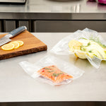 These vacuum sealer food saver bags and pouches can be submerged in hot water for thawing or sous vide cooking. Easily prep or cook stored food!