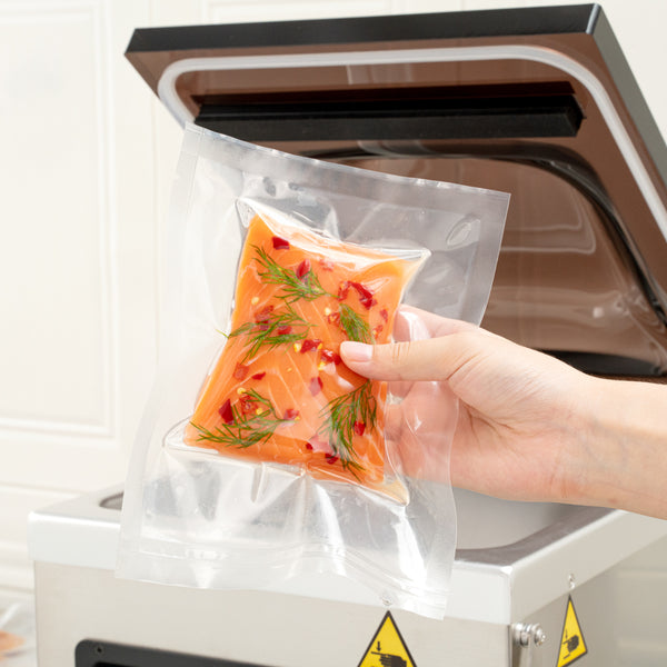 Our chamber vacuum sealer bags and pouches can be sealed with our matching Fresh Hero vacuum sealer to lock in the freshness of your food. Keep food fresher for longer!