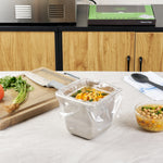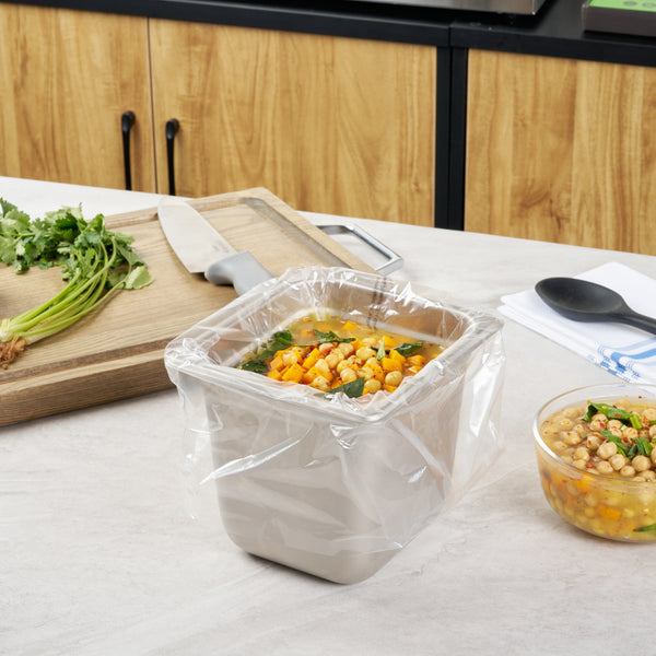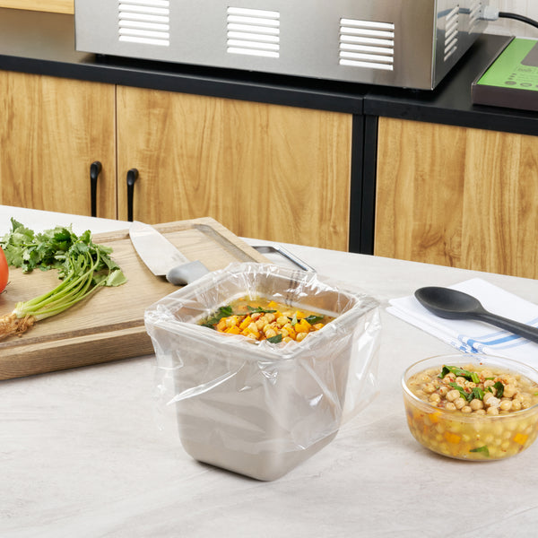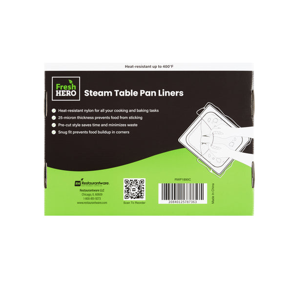 Ensure effortless cleanup with greaseproof protection. Fresh Hero Contour-Fit Steam Table Pan Liners feature a unique Contour-Fit® design that prevents food from getting trapped in corners, enhancing operational efficiency and reducing food waste. These disposable pan liners have a greaseproof surface that makes cleanup quick and easy, significantly decreasing labor time and costs for busy kitchens. Made from durable plastic, these liners are microwave-safe, freezer-safe, and oven-safe, maintaining food quality and yield during service. Measuring 13 inches in length and 18 inches in width, they fit seamlessly into most standard steam table pans, providing a reliable barrier against moisture loss and contamination. Save on operating costs by reducing water use and avoiding strenuous scrubbing. Elevate your food safety standards and streamline meal prep with these exceptional steam table pan liners. Each order includes 100 Fresh Hero Contour-Fit Steam Table Pan Liners.