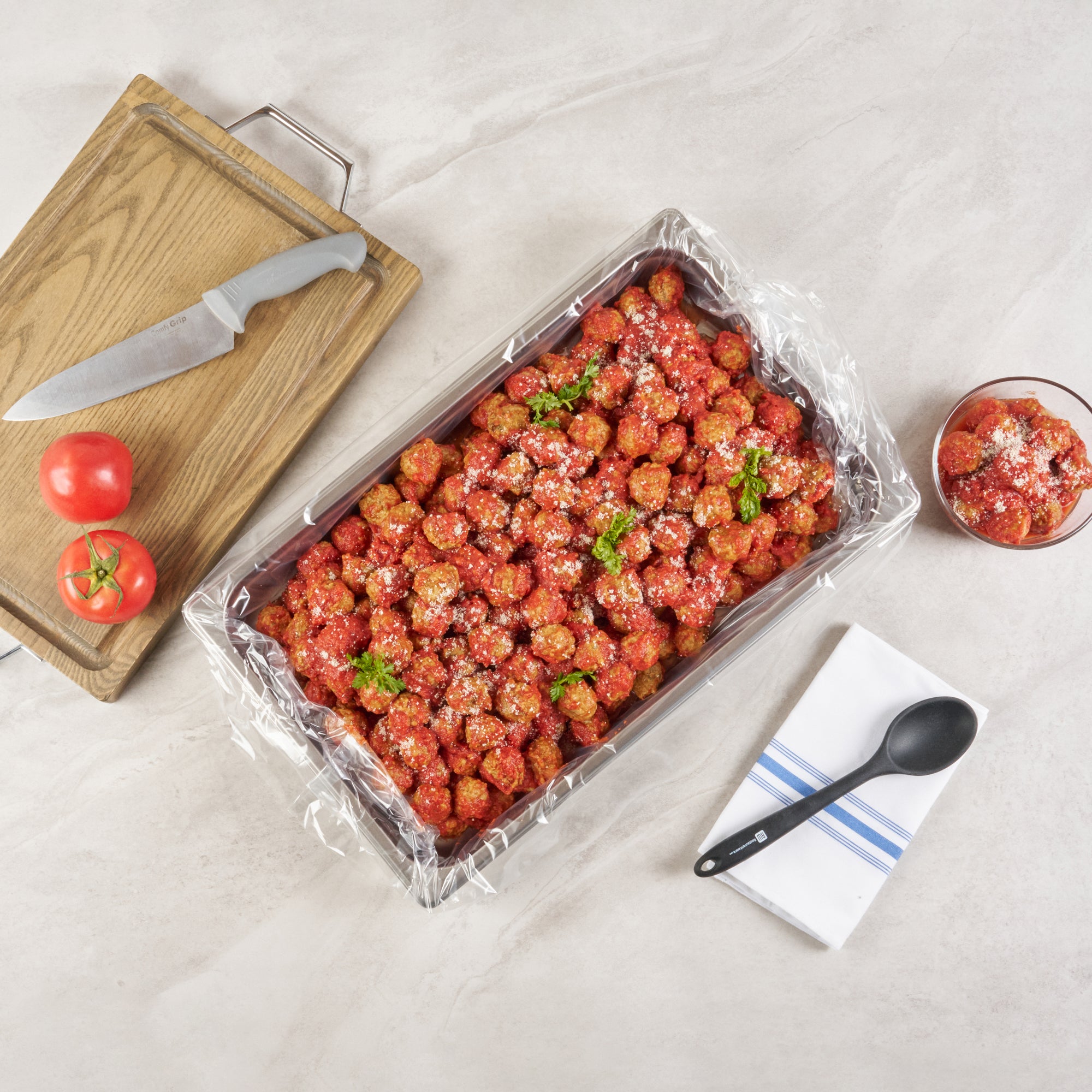 - Greaseproof surface increases food yield, reduces waste