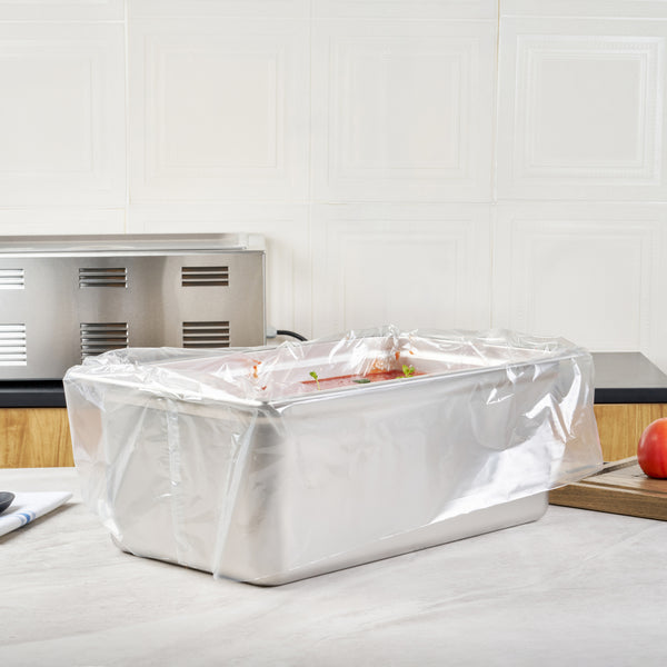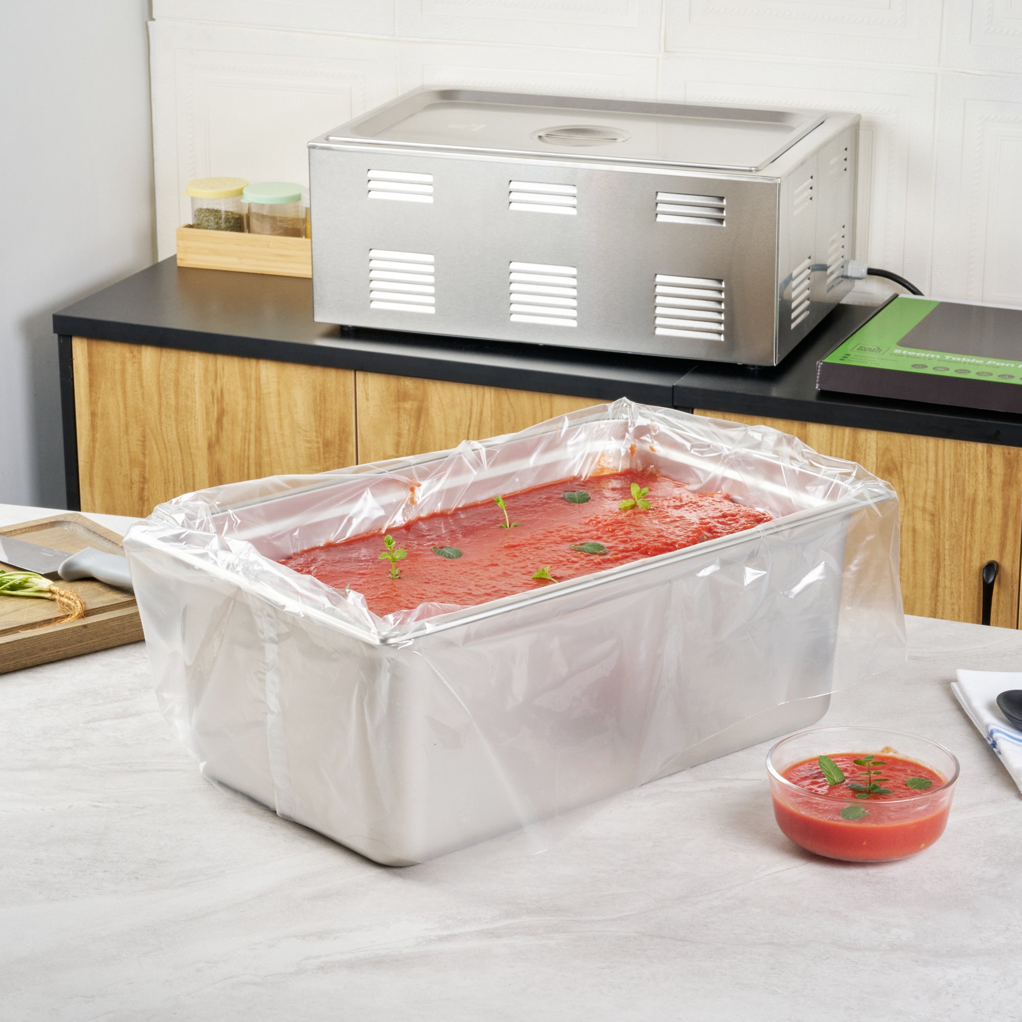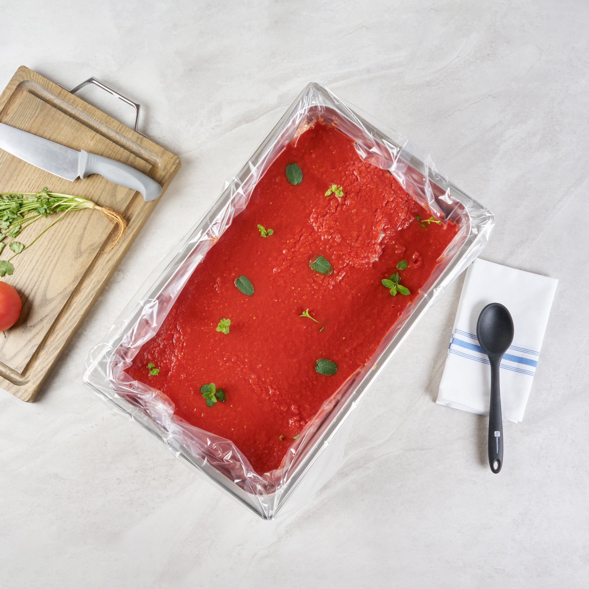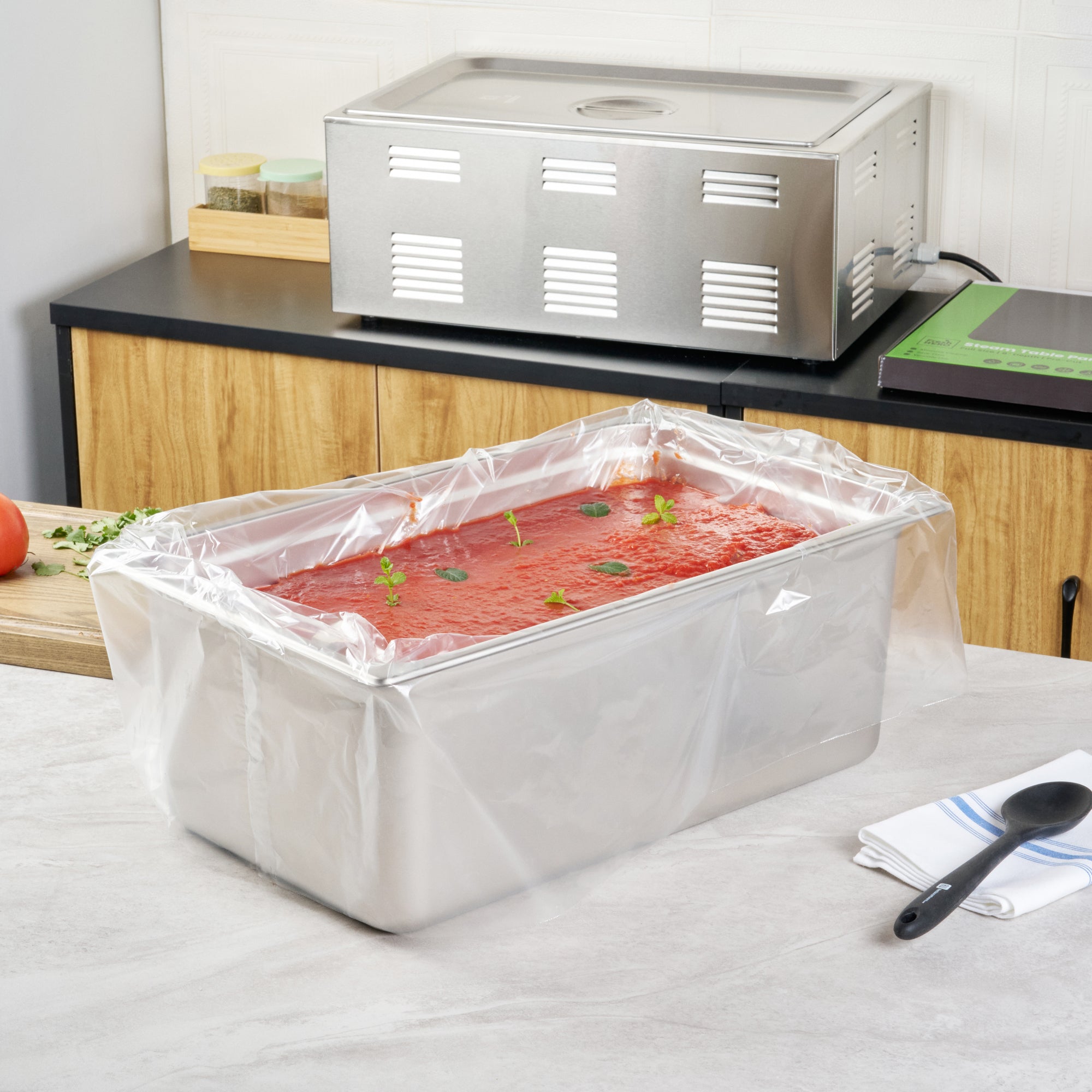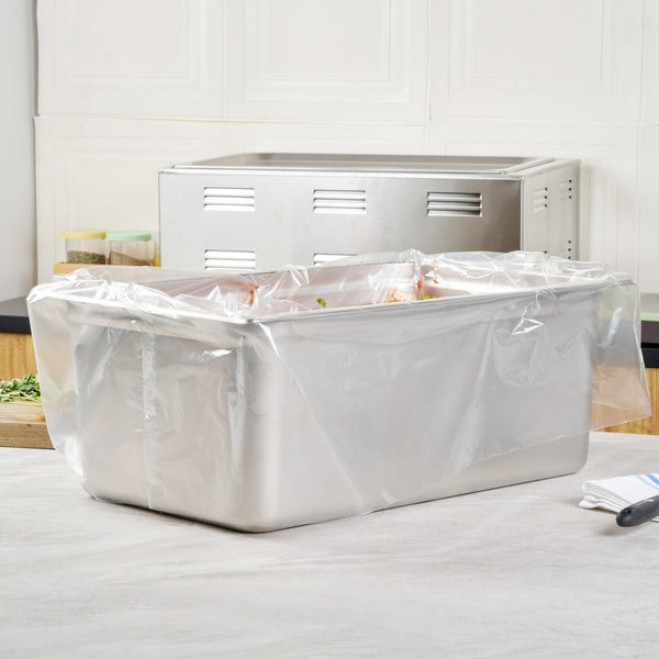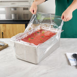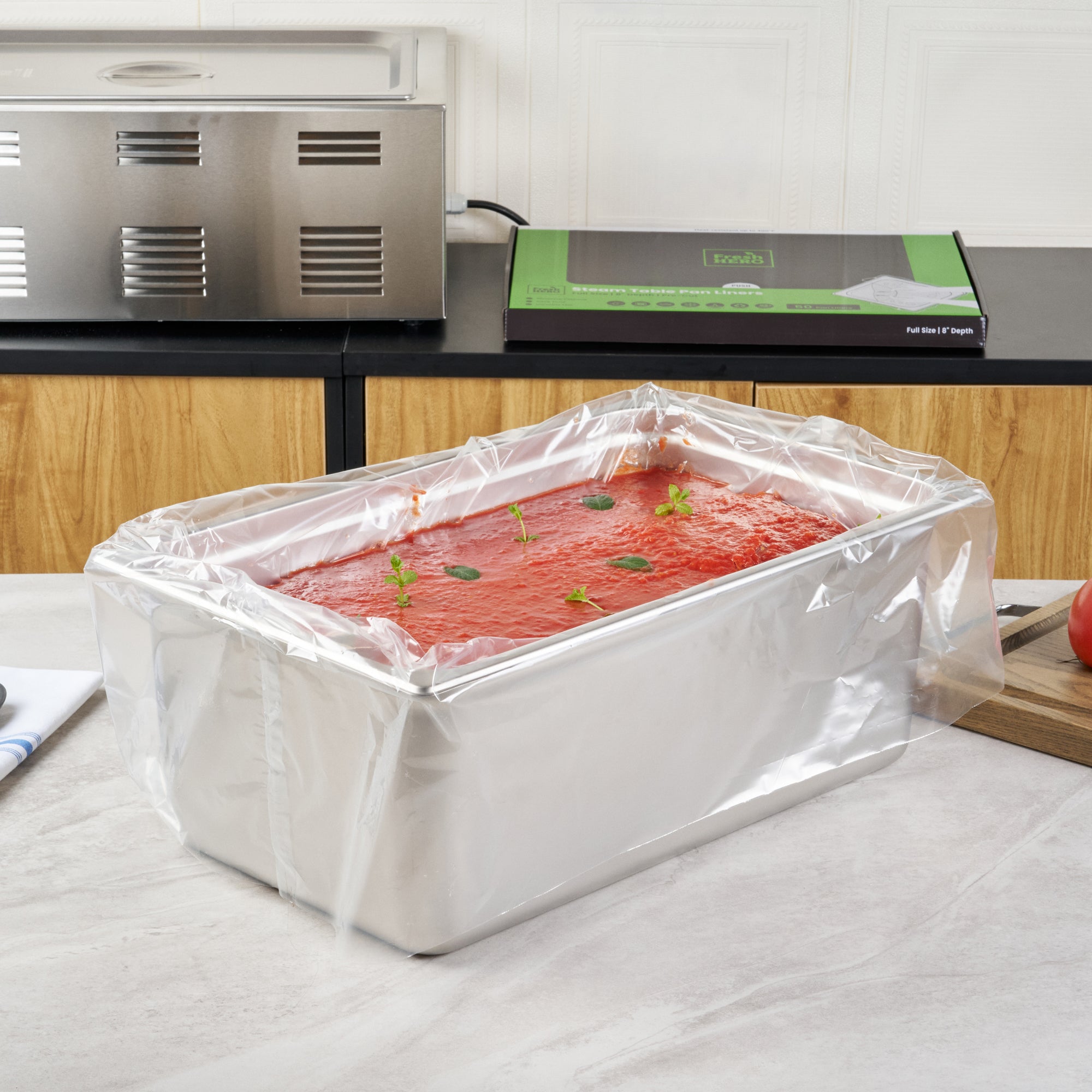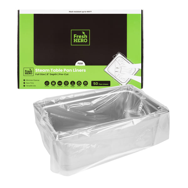 Simplify kitchen cleanup with these innovative liners. Fresh Hero Contour-Fit Disposable Pan Liners effortlessly adapt to pan dimensions, preventing food from getting lost in corners and ensuring efficient service. With a greaseproof surface, these disposable pan liners enhance food yield by preventing sticking, reducing waste, and saving costs. The durable plastic construction is microwave-safe, freezer-safe, and oven-safe, providing versatility across foodservice operations. At 34 inches long and 22 inches wide, these liners are designed to fit a variety of steam table pan sizes, protecting both food and pans while eliminating the need for scrubbing. By reducing water usage, they also lower operating expenses, making them an eco-friendly choice for restaurants. Elevate food quality and safety with these reliable liners. Each order includes 50 Fresh Hero Contour-Fit Disposable Pan Liners.