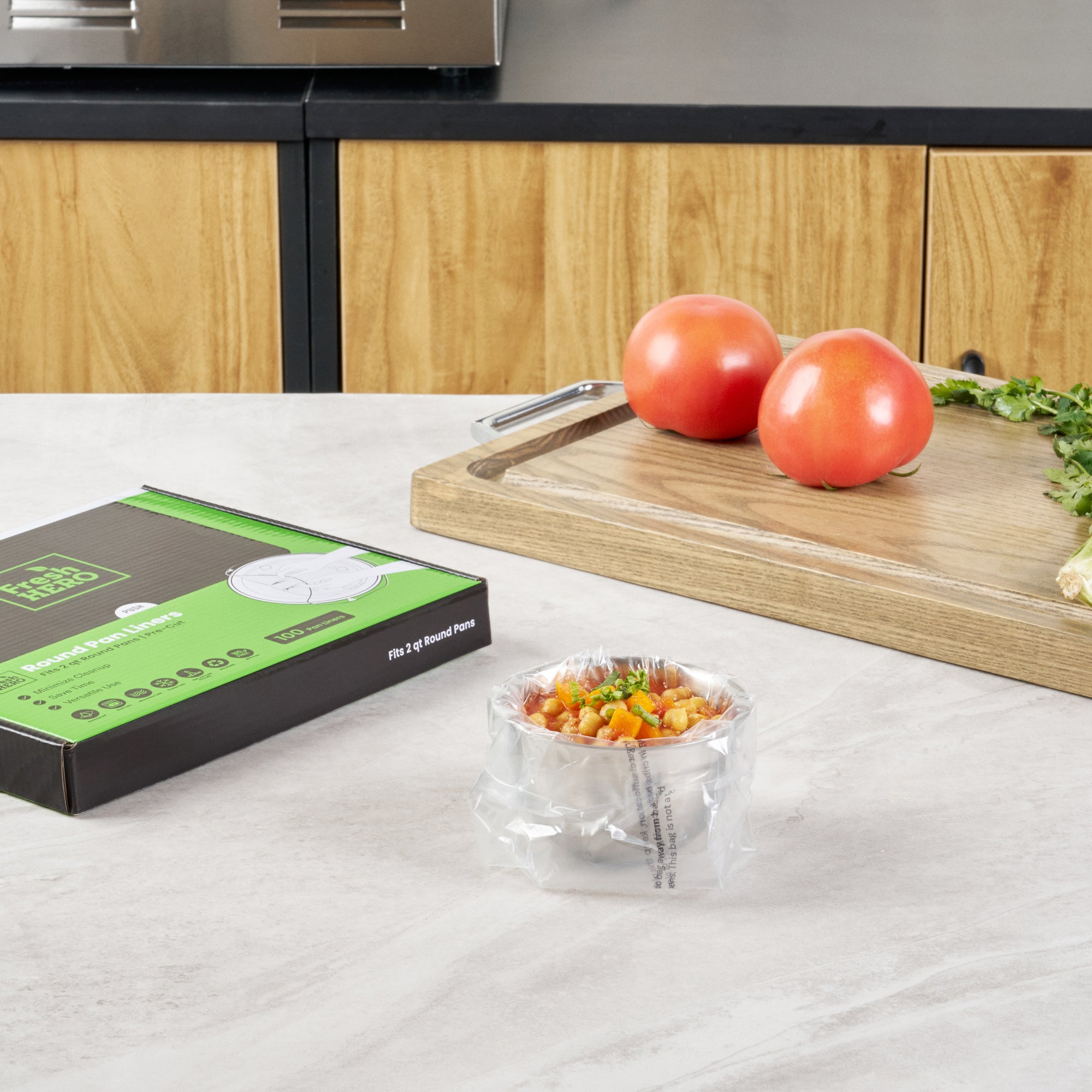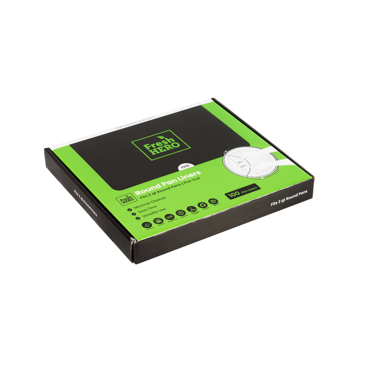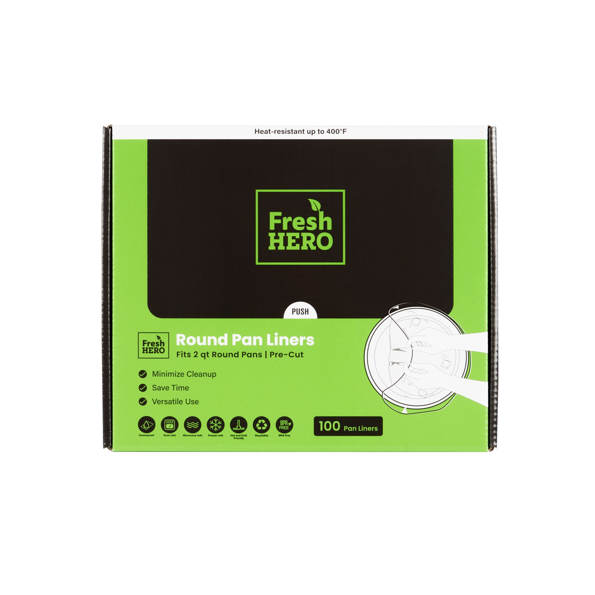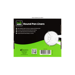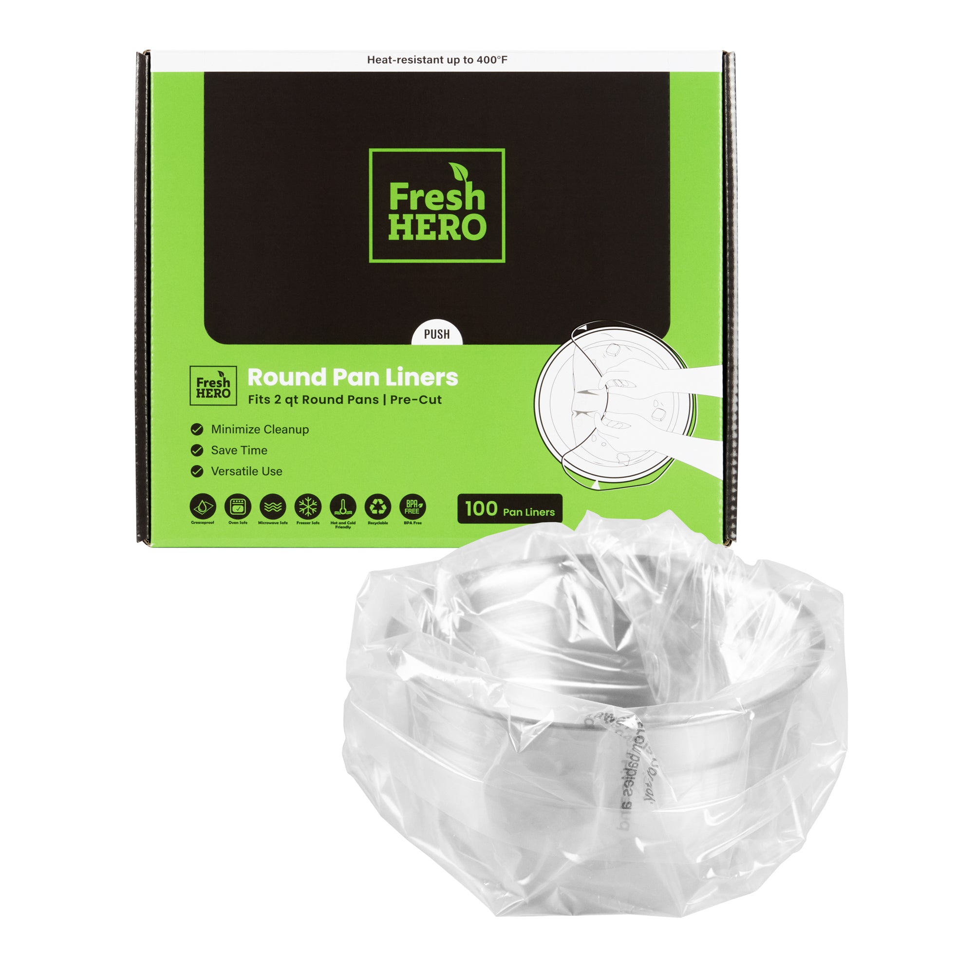 Effortlessly maintain pristine baking conditions with disposable round pan liners. Fresh Hero Non-Stick Disposable Round Pan Liners enhance kitchen efficiency with a contour-fit design that prevents food from getting lost in corners, ensuring full utilization of ingredients. These non-stick pan liners feature a moisture-locking capability, maintaining the quality of stored foods while saving labor time through quick cleanup, eliminating the need for scrubbing. Crafted from durable nylon, they offer a reliable non-stick surface that facilitates easy food release, reducing waste and cleanup time. Measuring 9 inches by 14 inches, these baking liners for round pans fit 2-quart round pans perfectly, providing consistent baking results across multiple uses. Enhance your foodservice operations with these efficient, labor-saving liners. Each order includes 100 Fresh Hero Non-Stick Disposable Round Pan Liners.