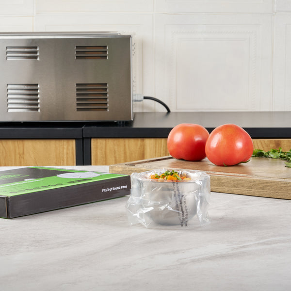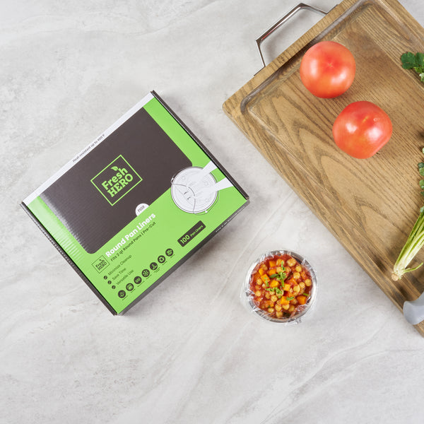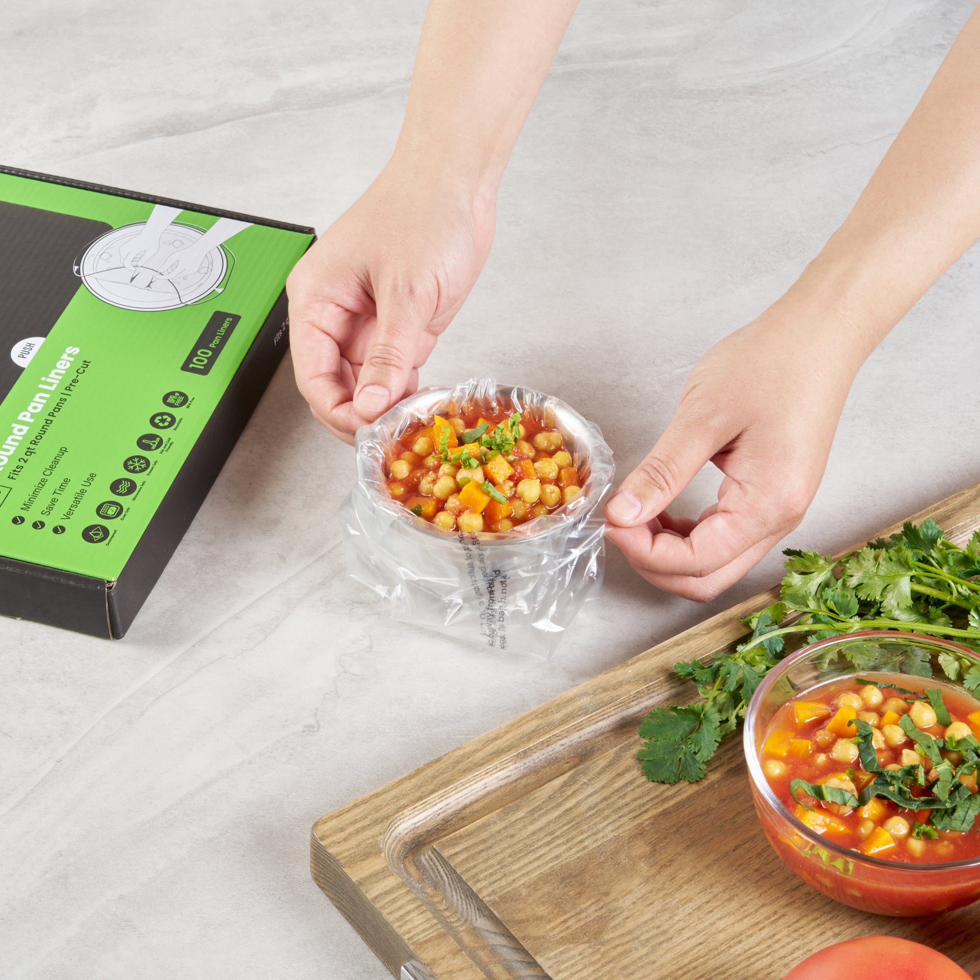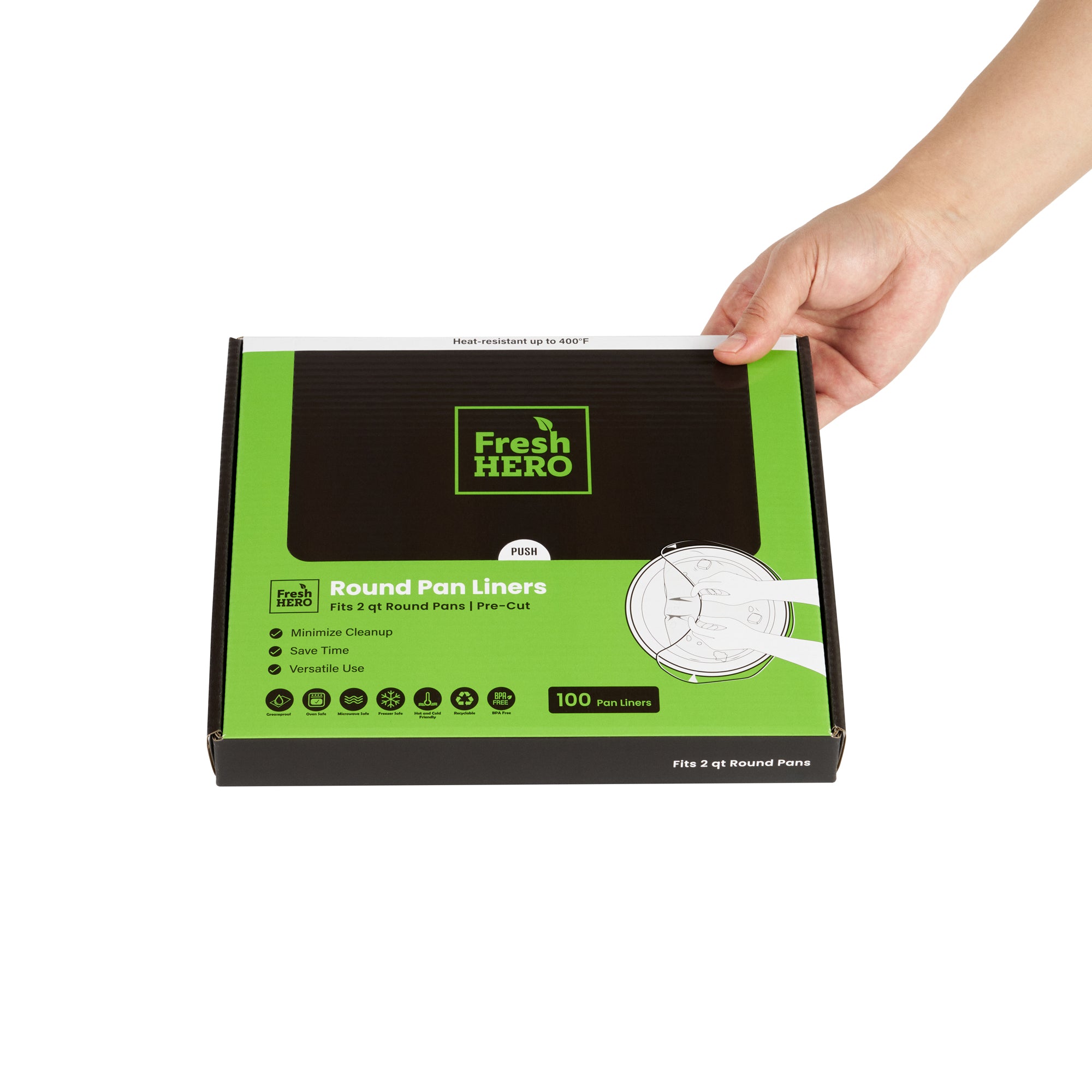 Effortlessly maintain pristine baking conditions with disposable round pan liners. Fresh Hero Non-Stick Disposable Round Pan Liners enhance kitchen efficiency with a contour-fit design that prevents food from getting lost in corners, ensuring full utilization of ingredients. These non-stick pan liners feature a moisture-locking capability, maintaining the quality of stored foods while saving labor time through quick cleanup, eliminating the need for scrubbing. Crafted from durable nylon, they offer a reliable non-stick surface that facilitates easy food release, reducing waste and cleanup time. Measuring 9 inches by 14 inches, these baking liners for round pans fit 2-quart round pans perfectly, providing consistent baking results across multiple uses. Enhance your foodservice operations with these efficient, labor-saving liners. Each order includes 100 Fresh Hero Non-Stick Disposable Round Pan Liners.
