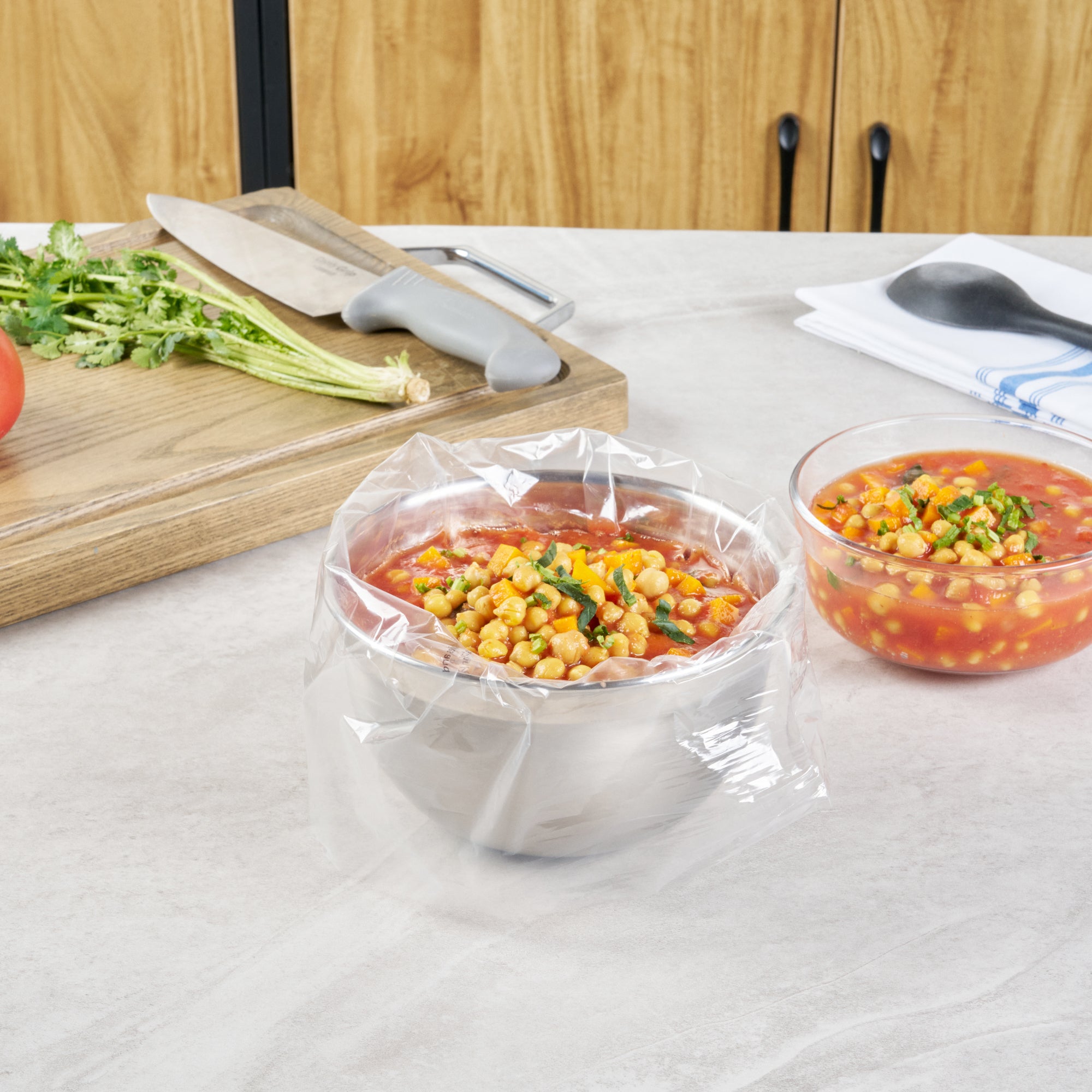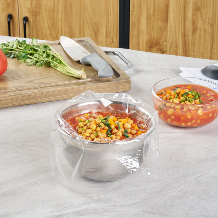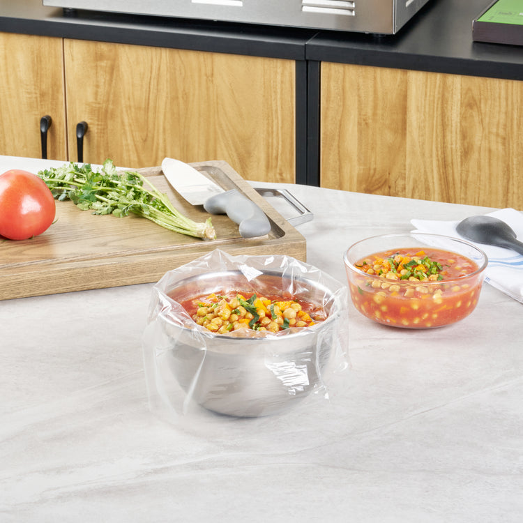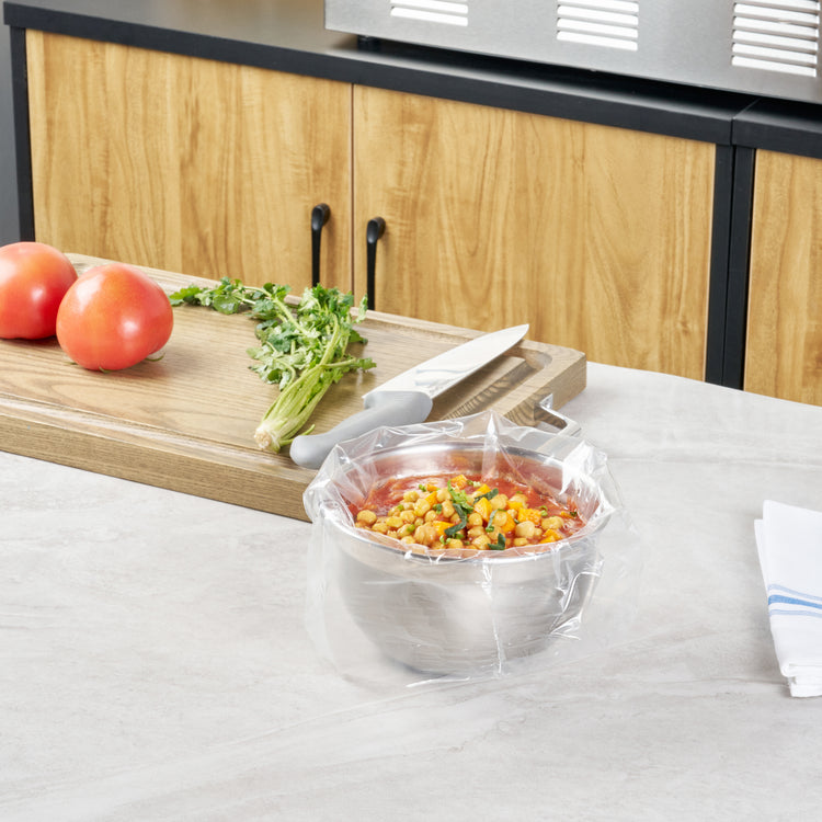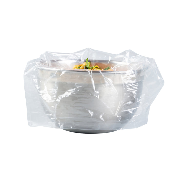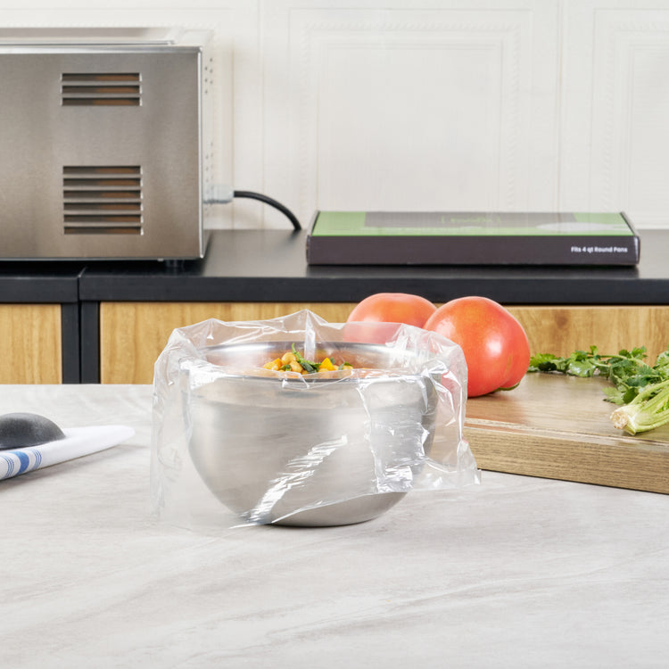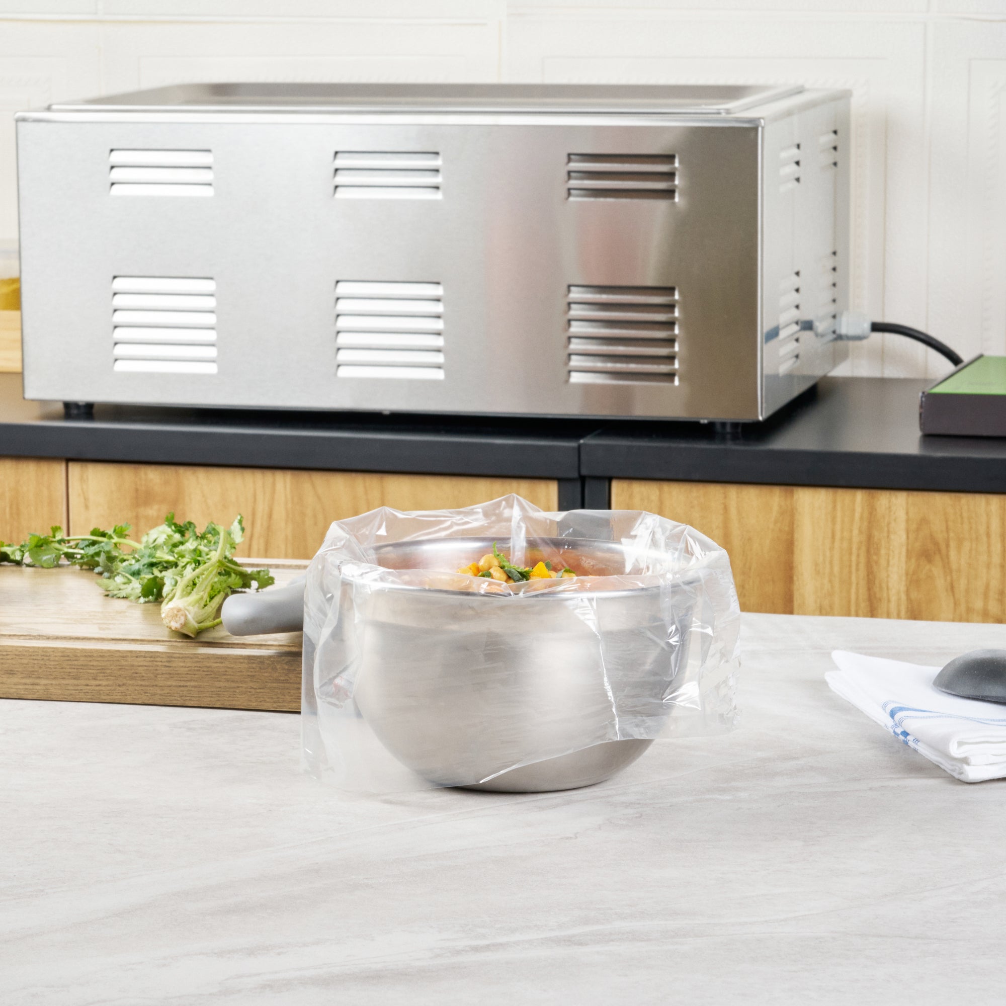 Ensure quick cleanup with high-performance disposable pan liners. Fresh Hero Contour-Fit Disposable Pan Liners are expertly designed to fit 4-quart round pans, preventing food from getting lost in liner corners and maximizing food yield. These non-stick pan liners feature a moisture-locking technology that retains the quality of soups and stews, ensuring your dishes remain flavorful and appealing. Made from nylon, these oven-safe pan liners withstand temperatures, making them ideal for rigorous commercial kitchens. The clear, 12-inch by 15-inch liners eliminate the need for scrubbing, streamlining your cleaning processes, and reducing labor costs. Their disposable nature not only promotes hygiene but also conserves water, further cutting operating expenses. Enhance operational efficiency and food quality with these indispensable kitchen tools. Each order includes 100 Fresh Hero Contour-Fit Disposable Pan Liners.