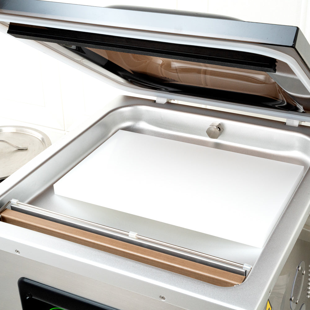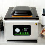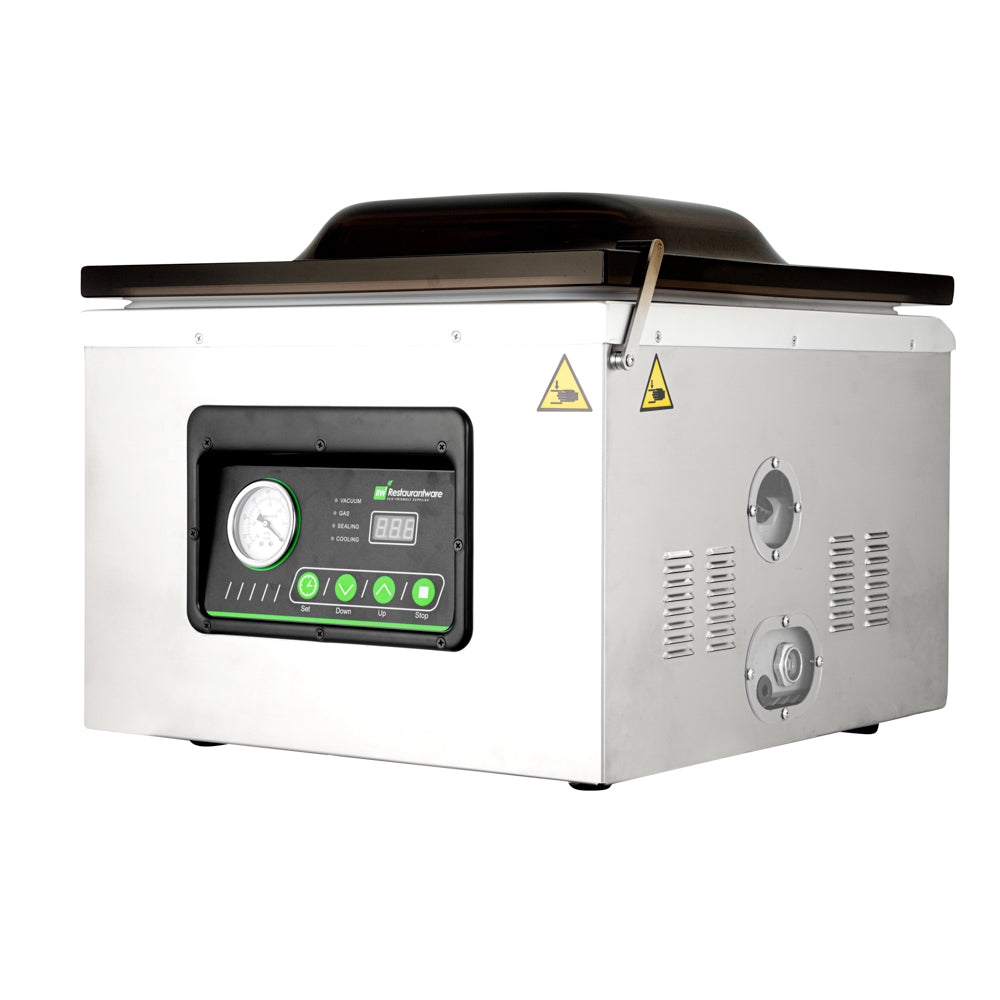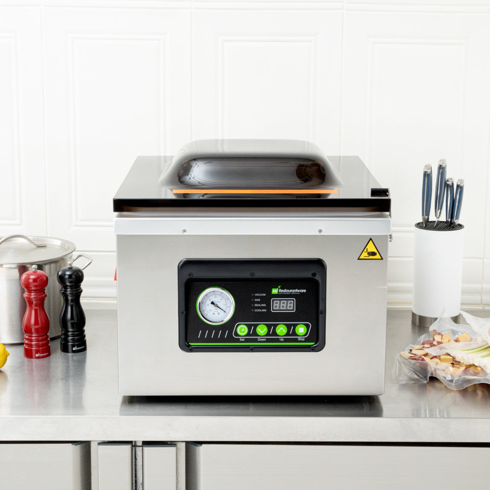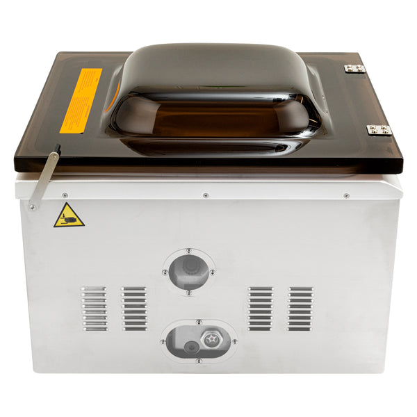 Prepare your food for sous vide cooking with our Fresh Hero Stainless Steel Chamber Vacuum Packaging Machine. Designed with a removable 16-inch seal bar, this vacuum food sealer removes up to 95% of air from food wrapped in our compatible Fresh Hero vacuum packaging bags. The oil pump of this vacuum sealing machine keeps the machine quiet when operating during service hours. With a built-in control panel, this food sealer machine is easy to use and allows you to seal in various foods without a hassle. Featuring a transparent lid, this commercial vacuum sealer allows you to check that food is being packaged properly. Built with a stainless steel body, this commercial vacuum cleaner is strong and sturdy to withstand constant uses over many years. Constructed with 120V and a NEMA 5-15P plug, this vacuum sealer matches standard U.S. power outlets. This chamber vacuum sealer measures 22.3 inches long by 19.5 inches wide by 19 inches tall and has 1 1/2 HP. Sold in a 1 count box. Fresh Hero vacuum packaging bags are available and sold separately.