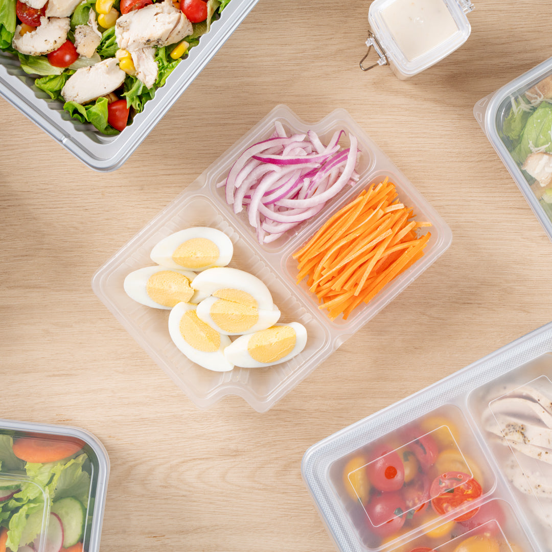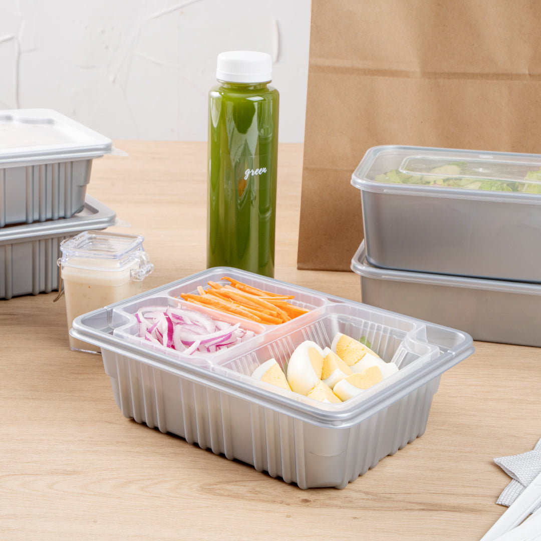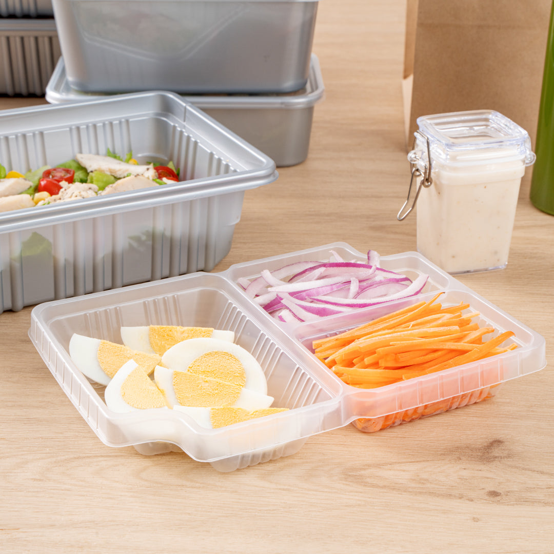 These compartment trays are compatible with our food containers to easily add more sides, snacks, sauces, or desserts to your meals. Plus, our take out containers securely lock in food, so you don’t have to worry about messy spills.