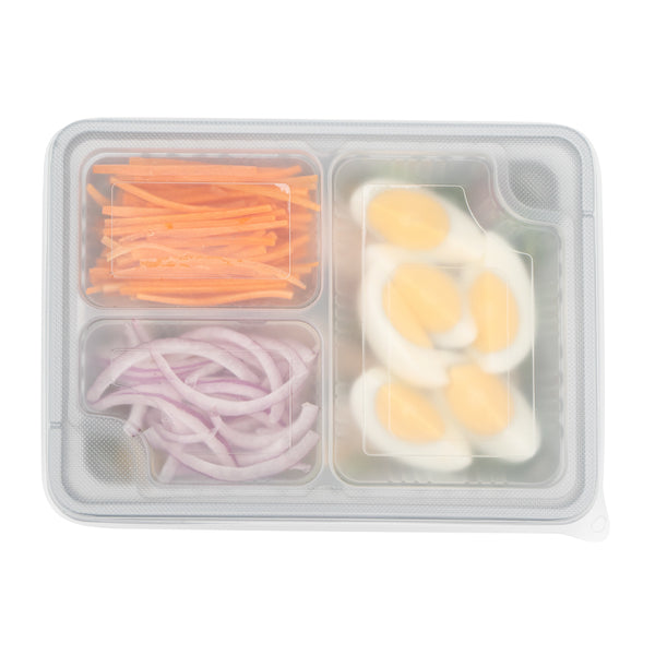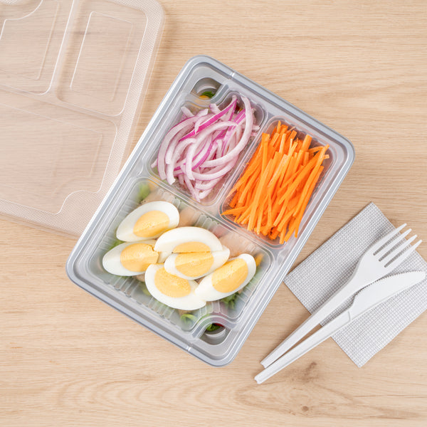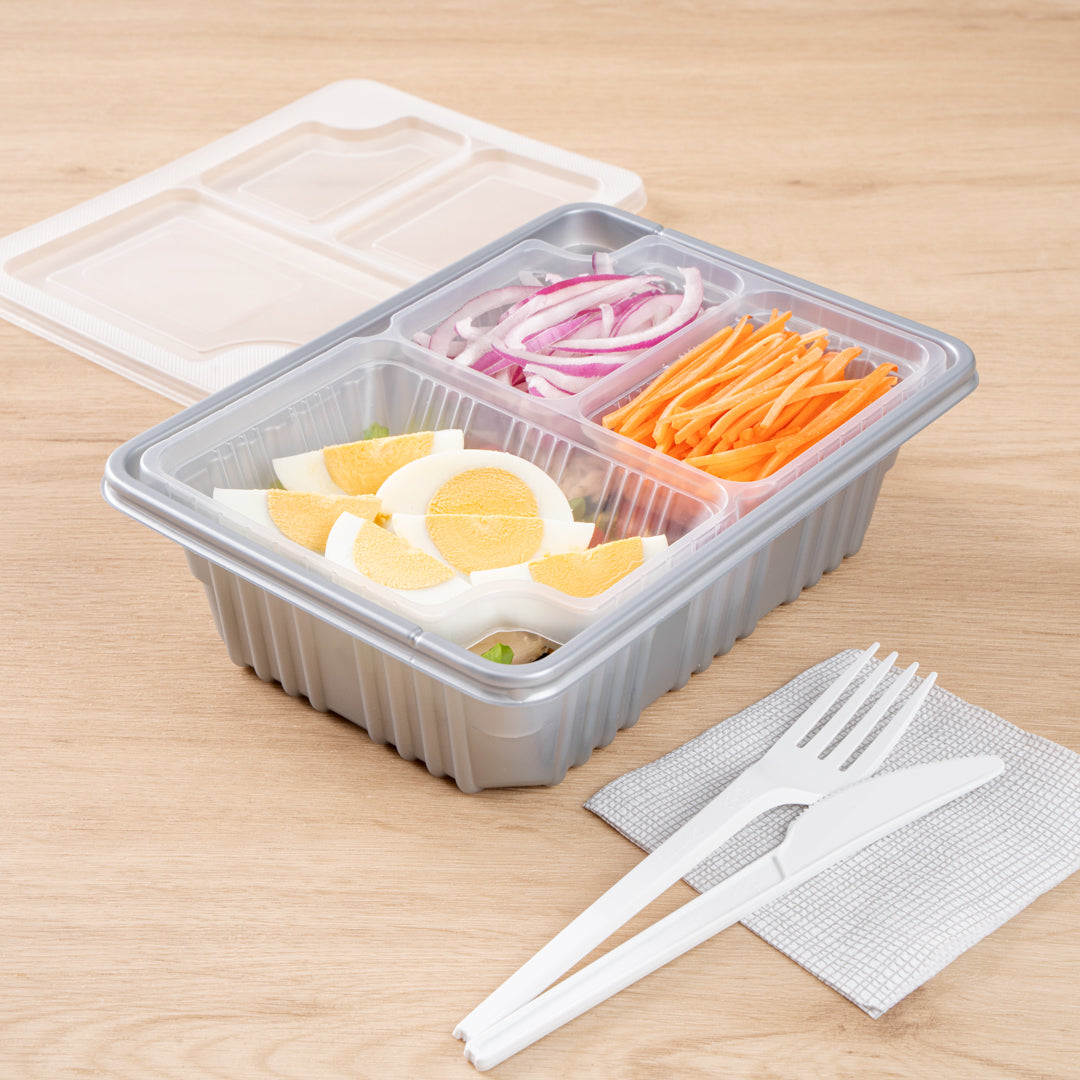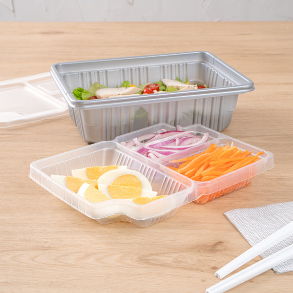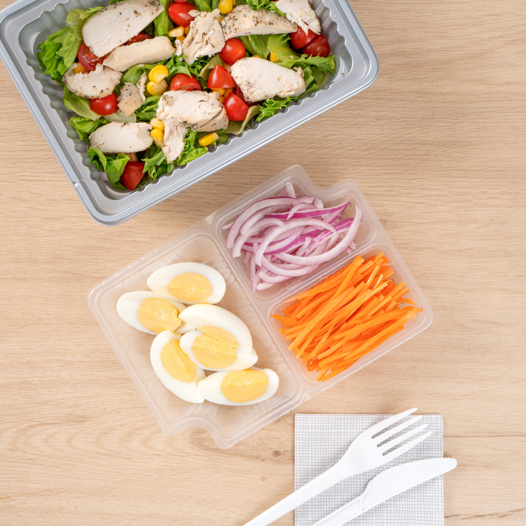 These compartment trays are compatible with our food containers to easily add more sides, snacks, sauces, or desserts to your meals. Plus, our take out containers securely lock in food, so you don’t have to worry about messy spills.