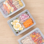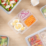 The stackable design of these lunch trays saves space in your kitchen for effortless organization. No more messy cabinets!