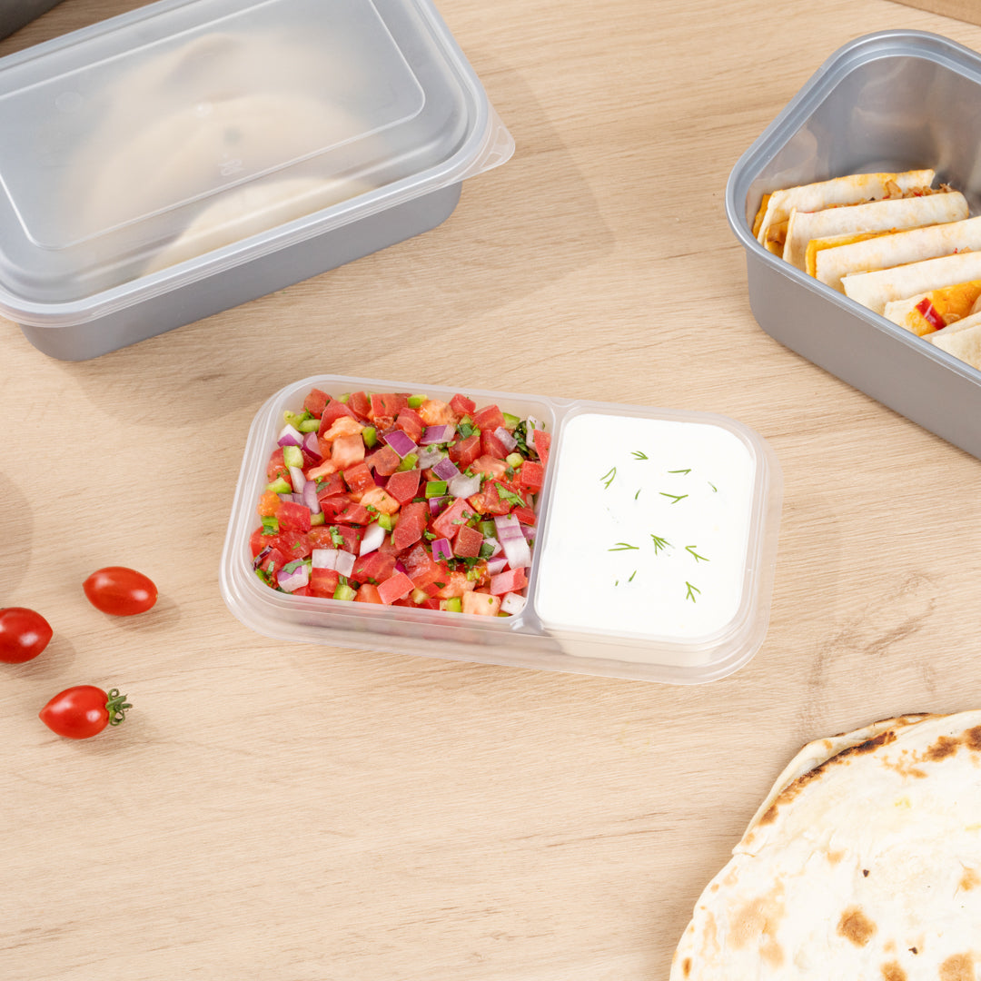 These compartment trays are compatible with our food containers to easily add more sides, snacks, sauces, or desserts to your meals. Plus, our take out containers securely lock in food, so you don’t have to worry about messy spills.