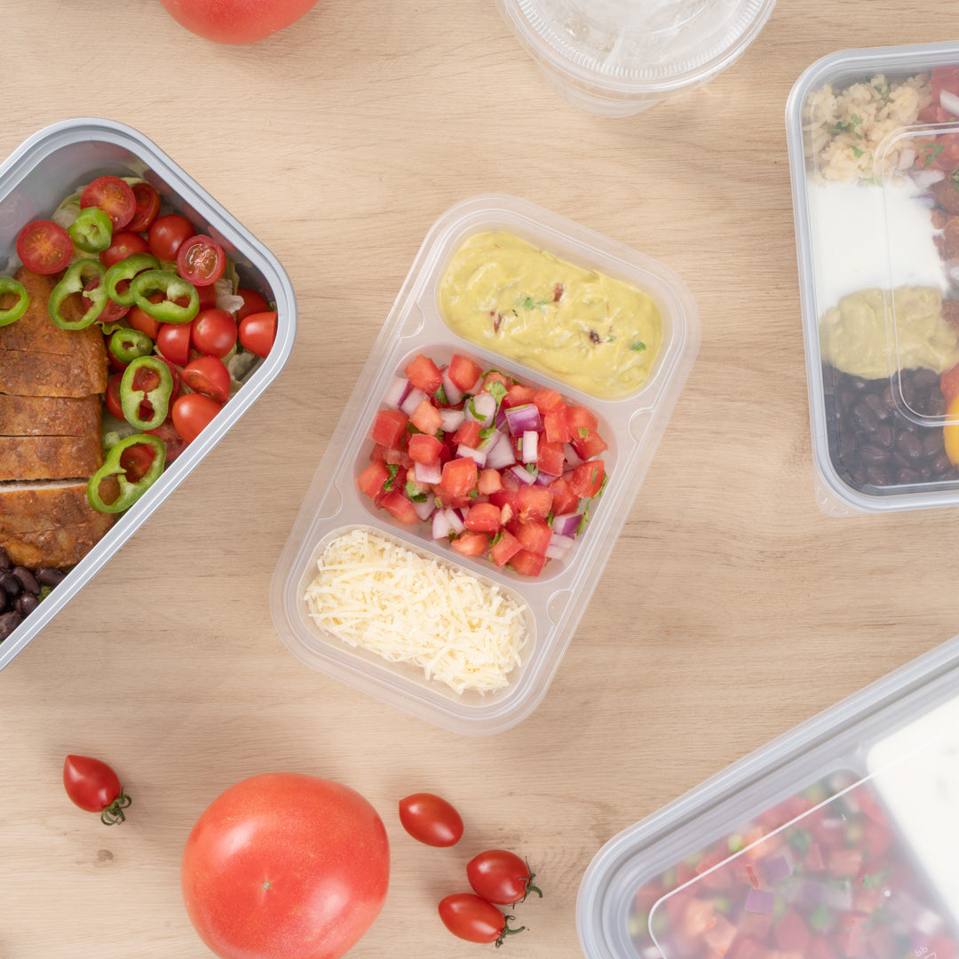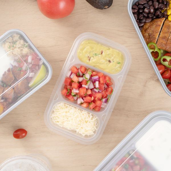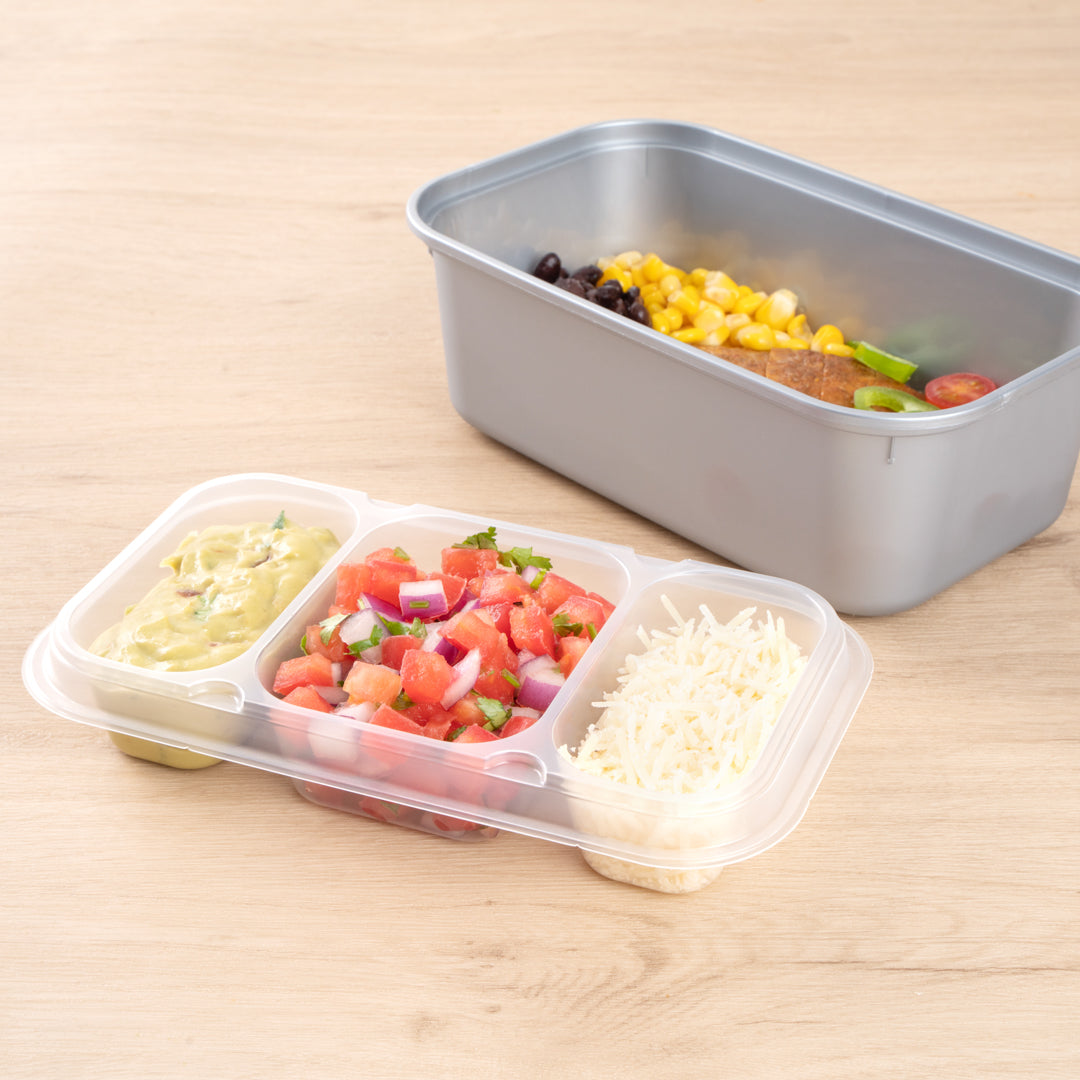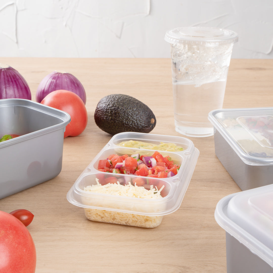 These compartment trays are compatible with our food containers to easily add more sides, snacks, sauces, or desserts to your meals. Plus, our take out containers securely lock in food, so you don’t have to worry about messy spills.