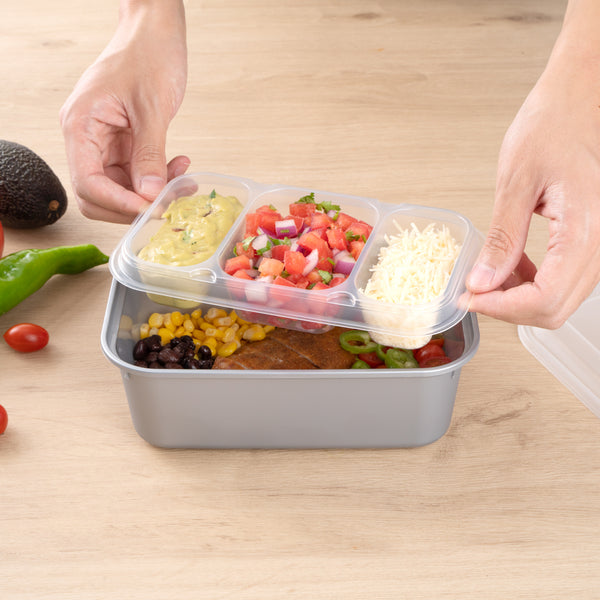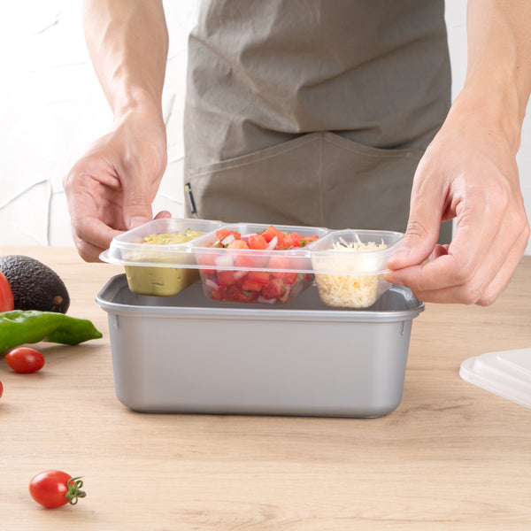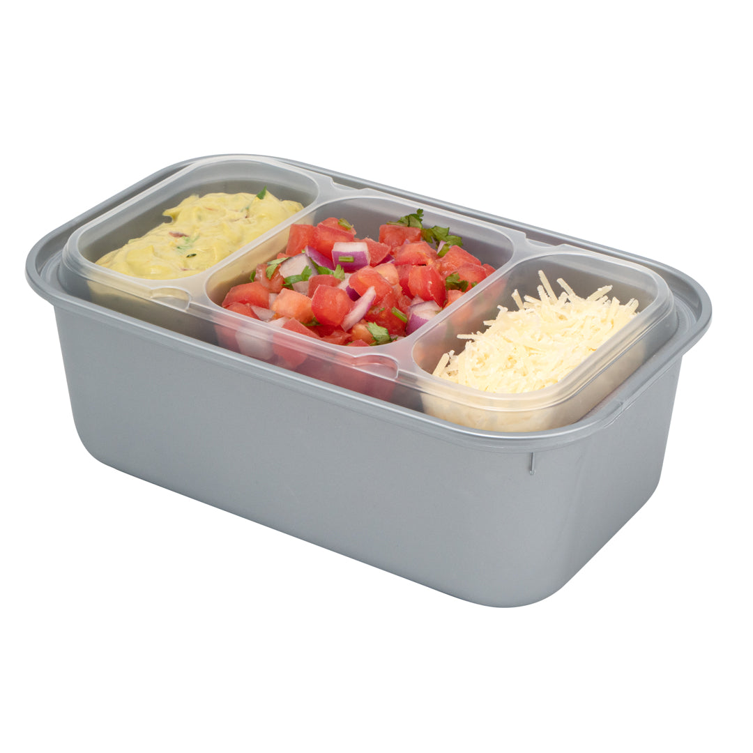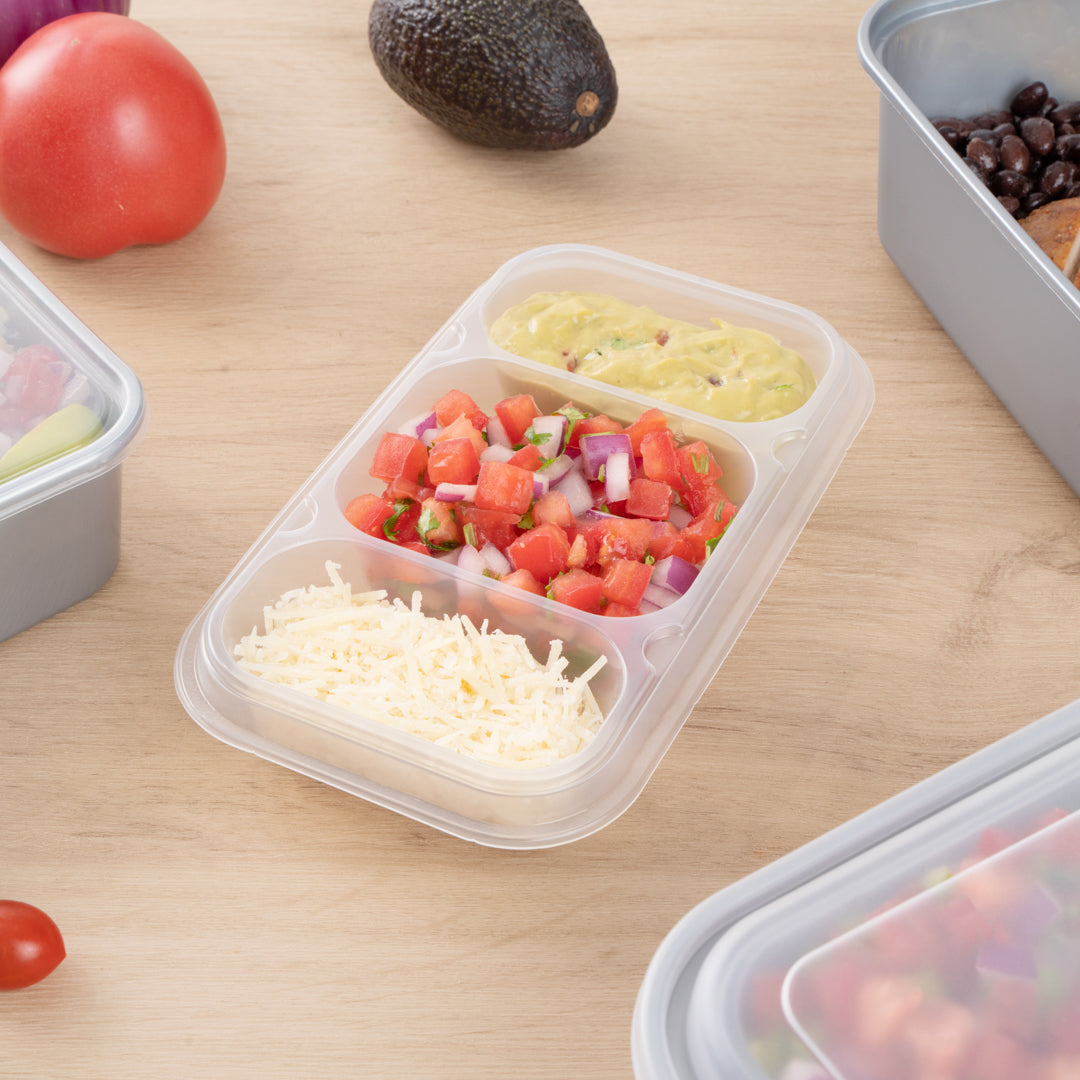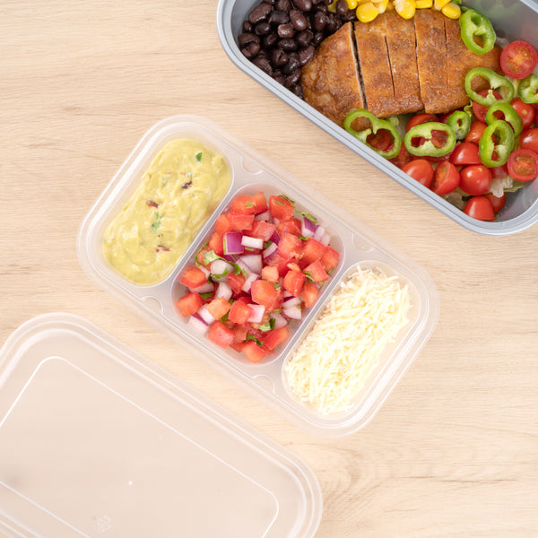 These compartment trays are compatible with our food containers to easily add more sides, snacks, sauces, or desserts to your meals. Plus, our take out containers securely lock in food, so you don’t have to worry about messy spills.