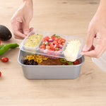 The stackable design of these lunch trays saves space in your kitchen for effortless organization. No more messy cabinets!