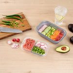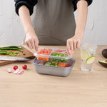 The stackable design of these lunch trays saves space in your kitchen for effortless organization. No more messy cabinets!