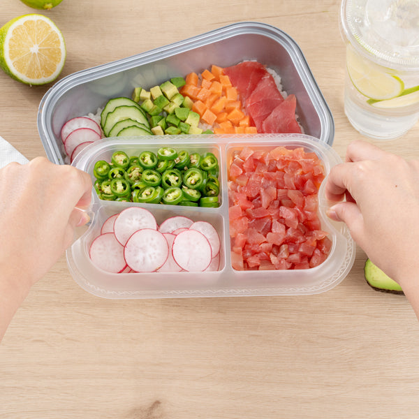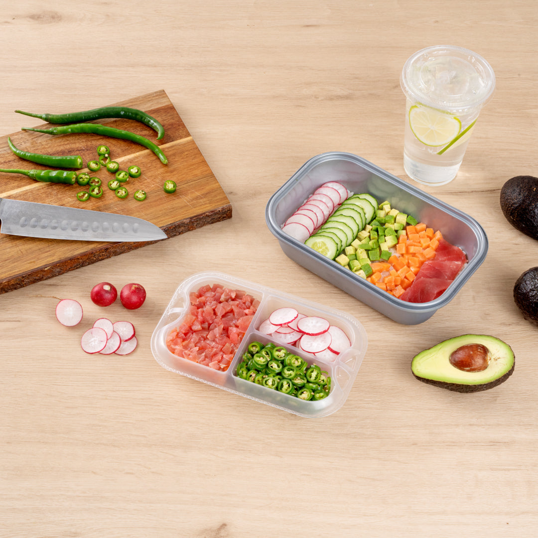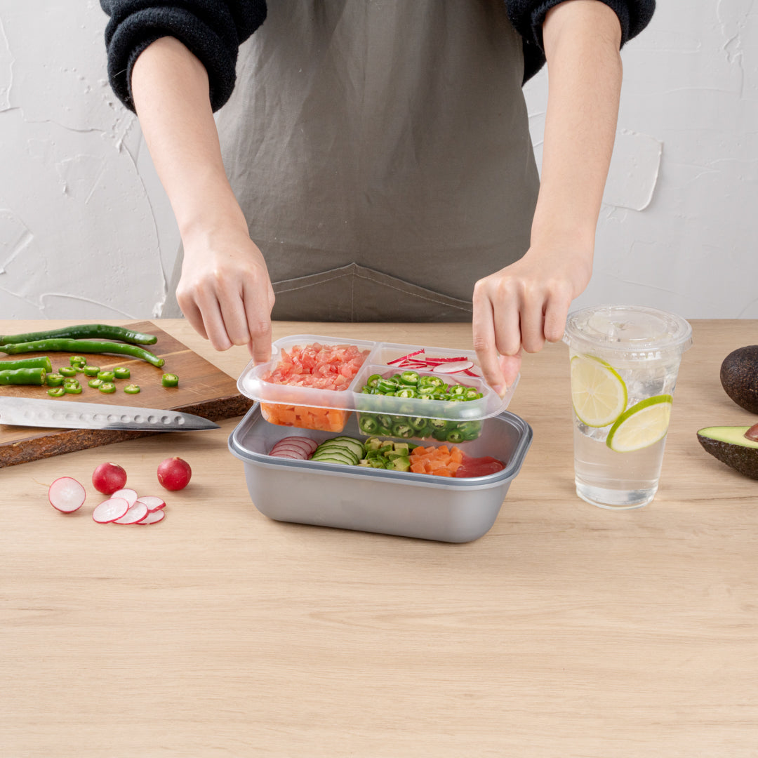 These compartment trays are compatible with our food containers to easily add more sides, snacks, sauces, or desserts to your meals. Plus, our take out containers securely lock in food, so you don’t have to worry about messy spills.