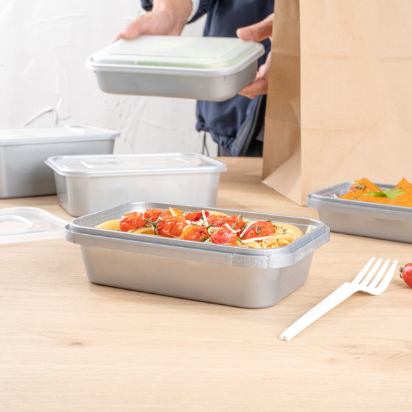 A number of these meal prep containers have coordinating inserts available, allowing you to create your own packaging solution and store numerous menu items in the same container. Our selection of food containers comes in a clear, silver, or matte gray finish to ensure your premade meals stand out from the crowd.