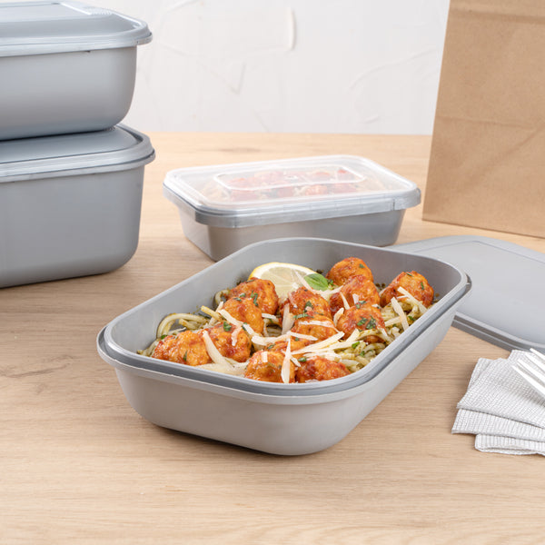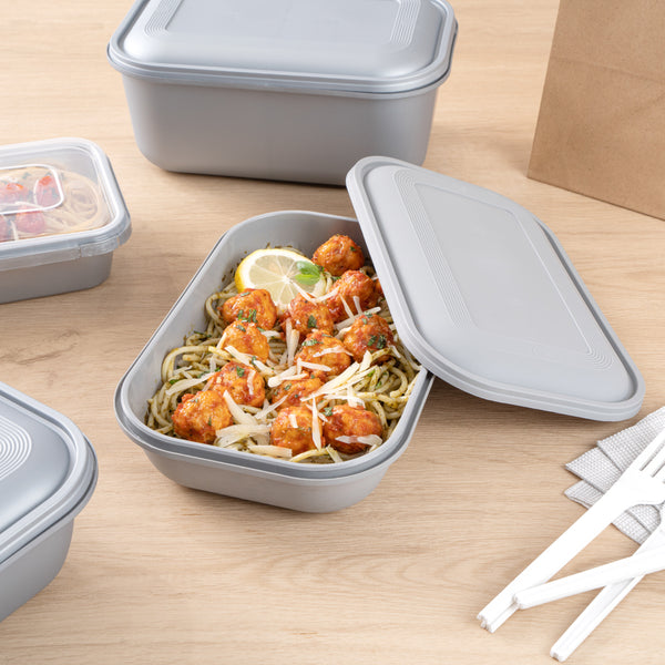 A number of these meal prep containers have coordinating inserts available, allowing you to create your own packaging solution and store numerous menu items in the same container. Our selection of food containers comes in a clear, silver, or matte gray finish to ensure your premade meals stand out from the crowd.