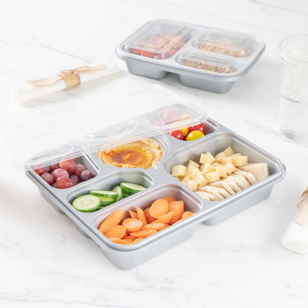 - 6 compartments provide space to divide sides or snacks from main dishes