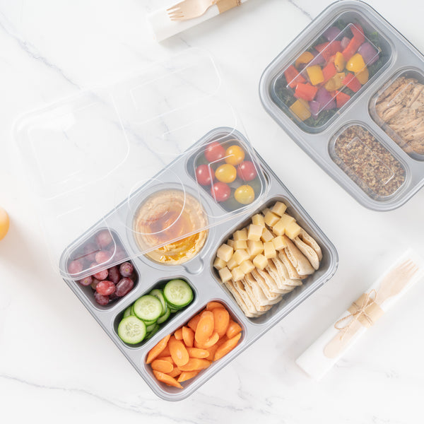 A number of these meal prep containers have coordinating inserts available, allowing you to create your own packaging solution and store numerous menu items in the same container. Our selection of food containers comes in a clear, silver, or matte gray finish to ensure your premade meals stand out from the crowd.