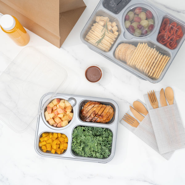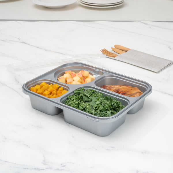 - 4 compartments provide space to divide sides or snacks from main dishes