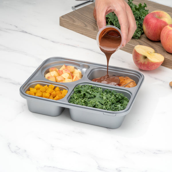 A number of these meal prep containers have coordinating inserts available, allowing you to create your own packaging solution and store numerous menu items in the same container. Our selection of food containers comes in a clear, silver, or matte gray finish to ensure your premade meals stand out from the crowd.