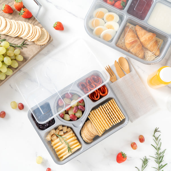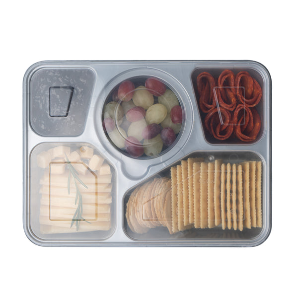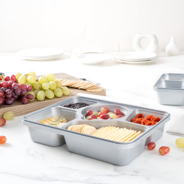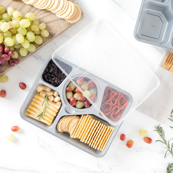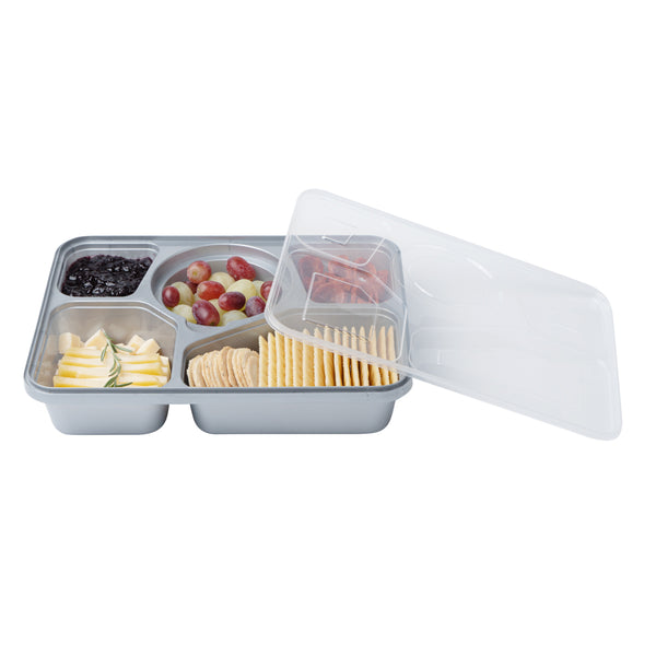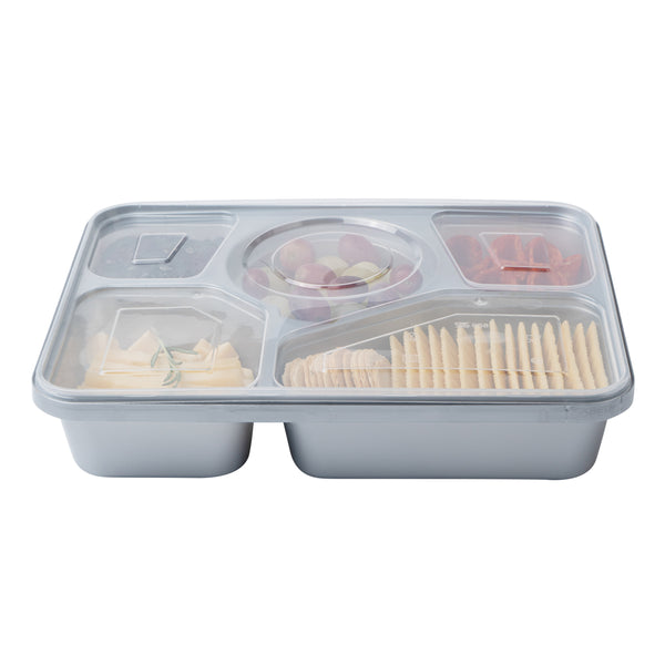 - 5 compartments provide space to divide sides or snacks from main dishes