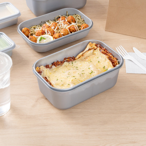 A number of these meal prep containers have coordinating inserts available, allowing you to create your own packaging solution and store numerous menu items in the same container. Our selection of food containers comes in a clear, silver, or matte gray finish to ensure your premade meals stand out from the crowd.