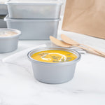 Whether you're packaging take out orders or are meal prepping for the week, these durable containers with lids are great for containing all of your hot or cold dishes. These microwavable containers allow you to heat up and enjoy food in the same container.