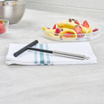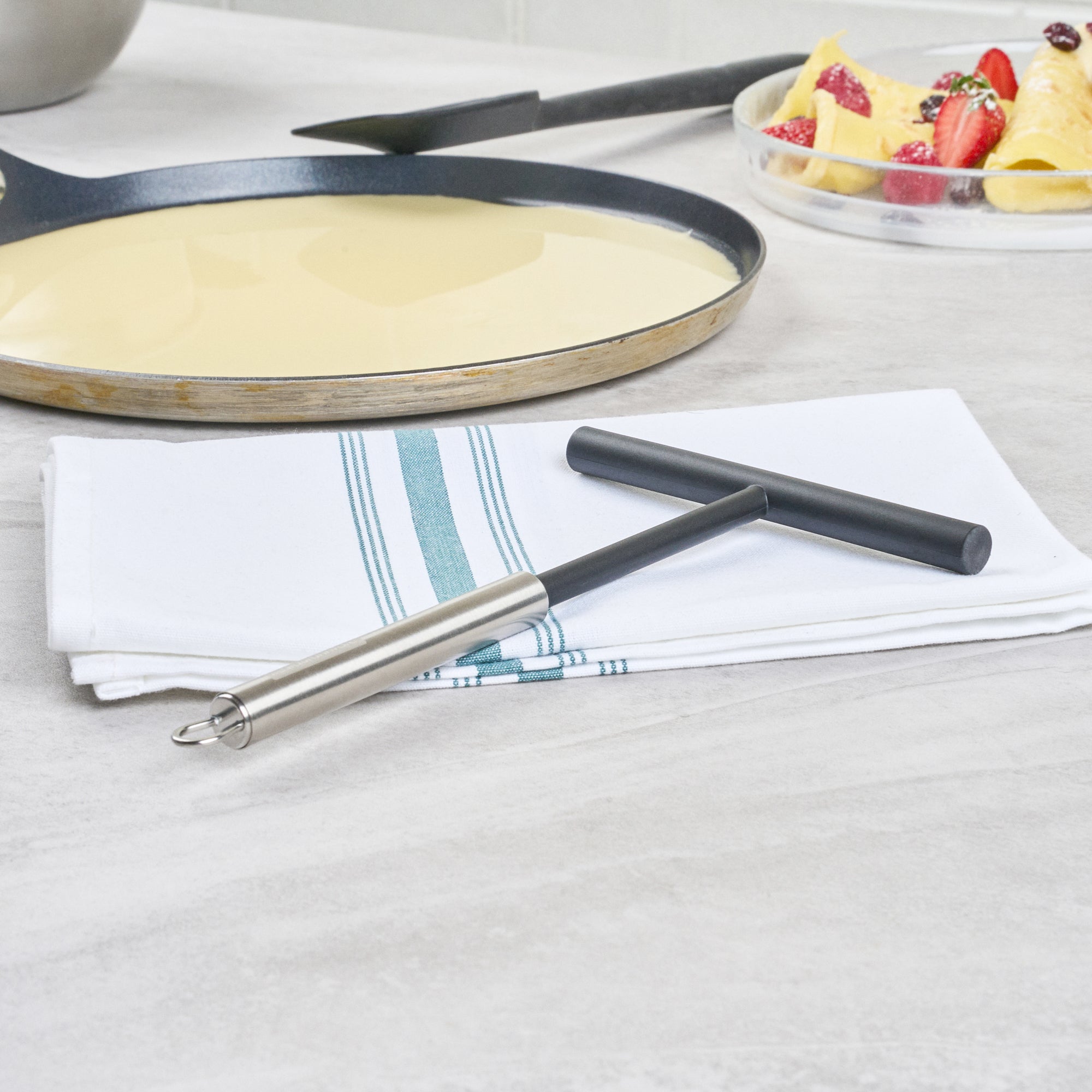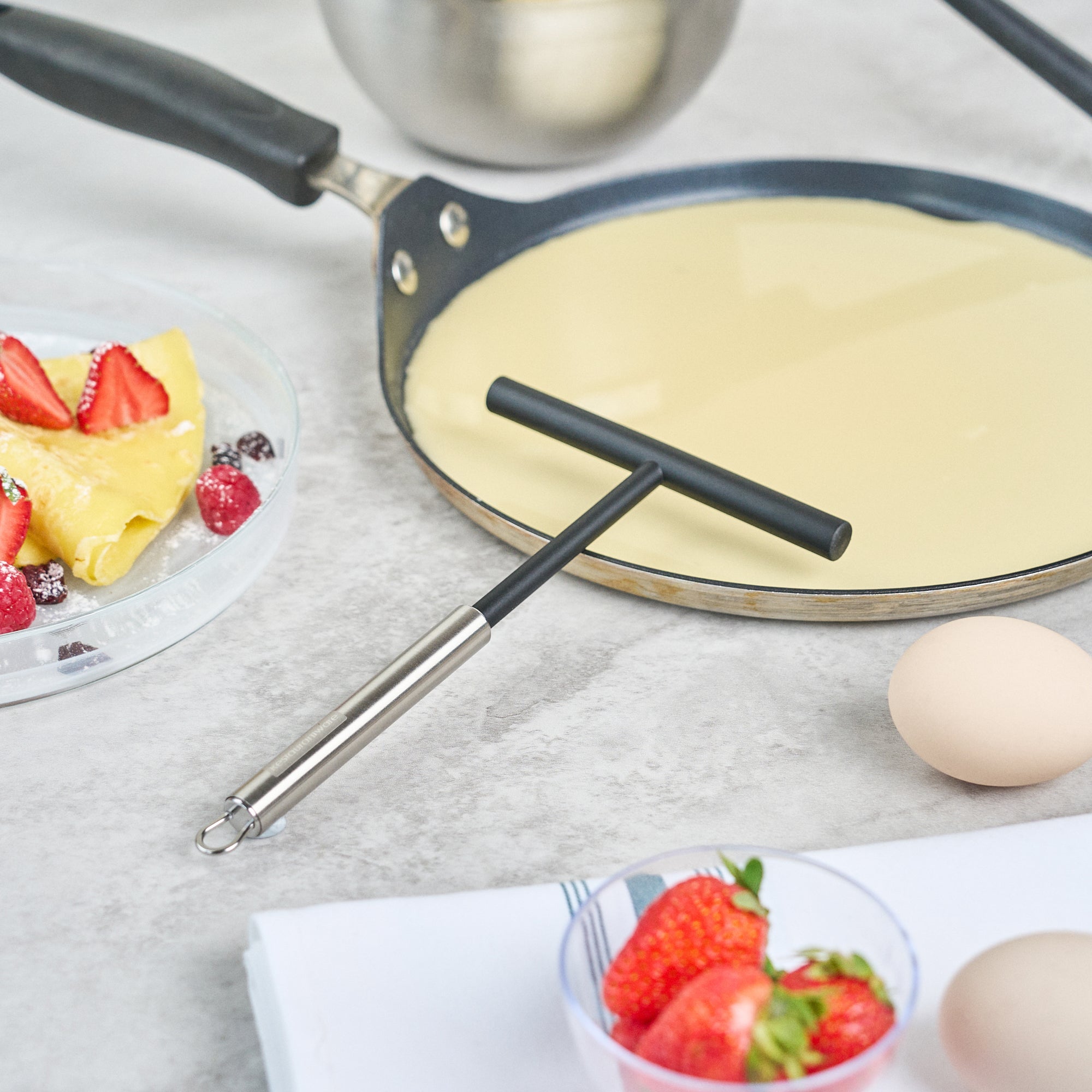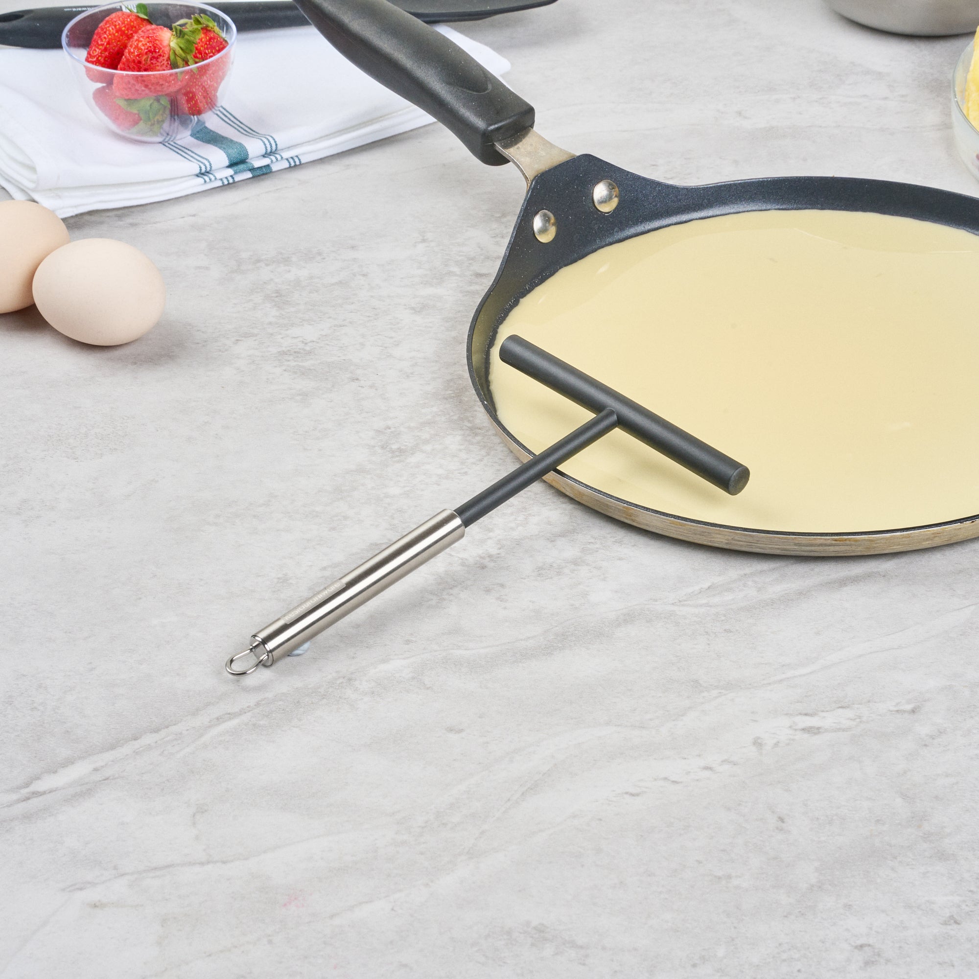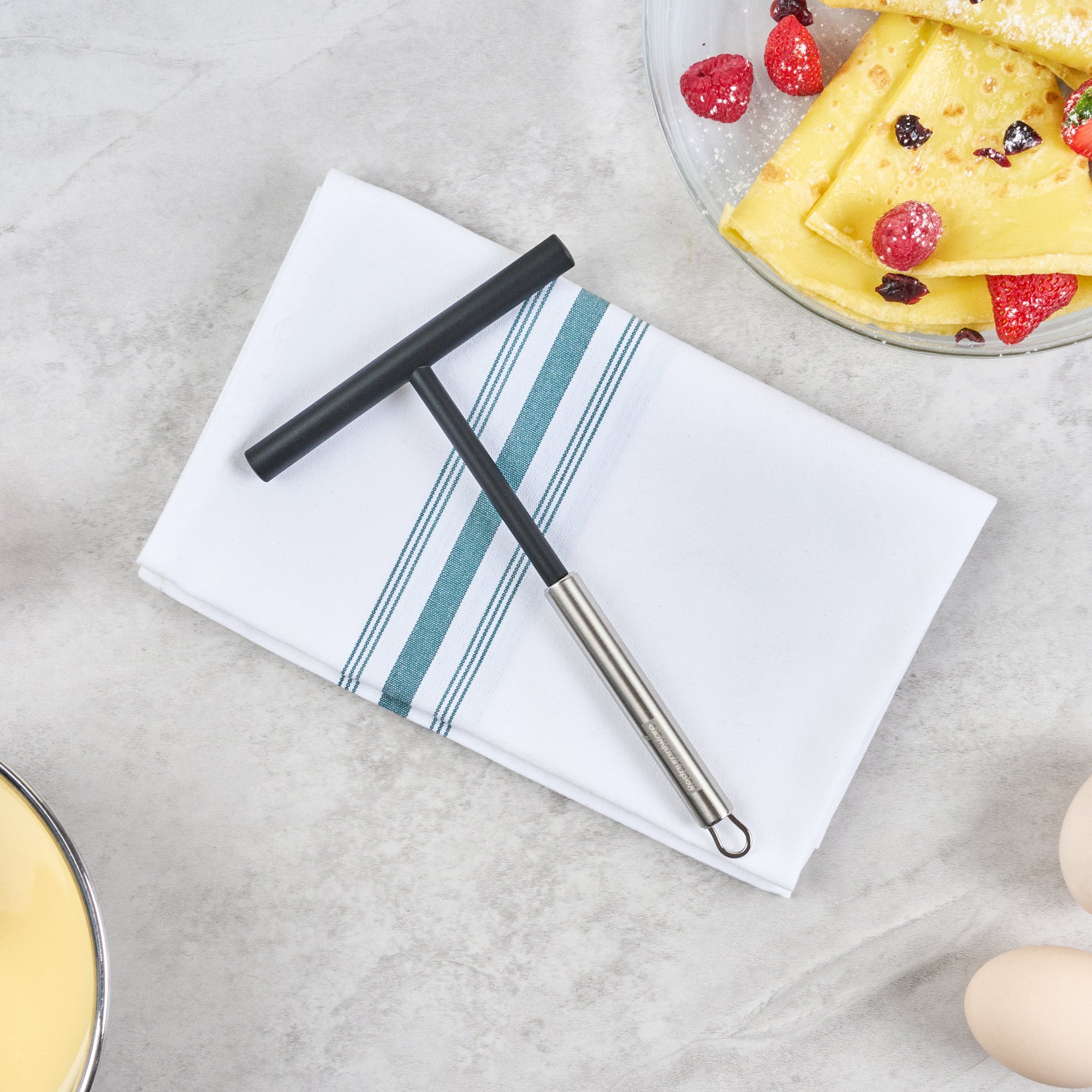 Achieve perfectly thin and uniform crepes with ease. The German Standard Crepe Batter Spreader’s ergonomic design ensures precise spreading, making it an essential crepe batter spreader for professional kitchens. Crafted with a heat-resistant black nylon, this crepe stick withstands high temperatures, ensuring safety and durability. The stainless steel handle offers an ergonomic grip and enhances control during cooking, making it an indispensable crepe making tool for chefs and cooks. Measuring 7 3/4 inches by 4 3/4 inches, its T-shaped design efficiently creates thin, even crepes, making it ideal for restaurants and cafes aiming to deliver consistent results. Enhance your kitchen’s efficiency with this spreader, perfect for high-volume crepe production. Each order includes 6 German Standard Crepe Batter Spreaders.